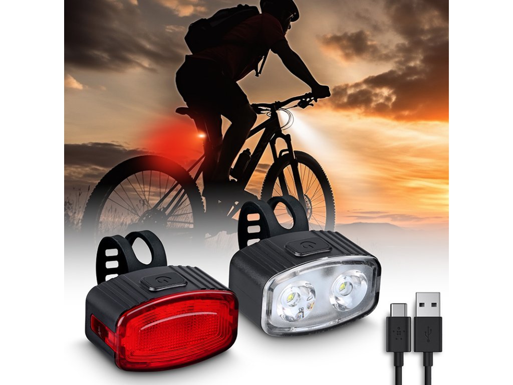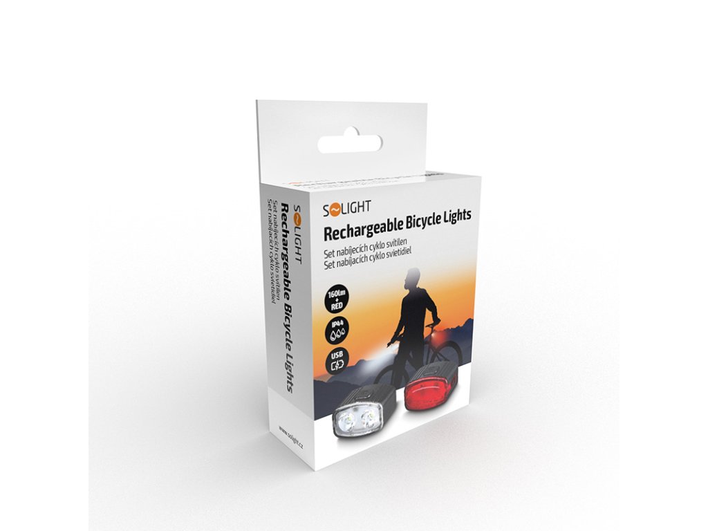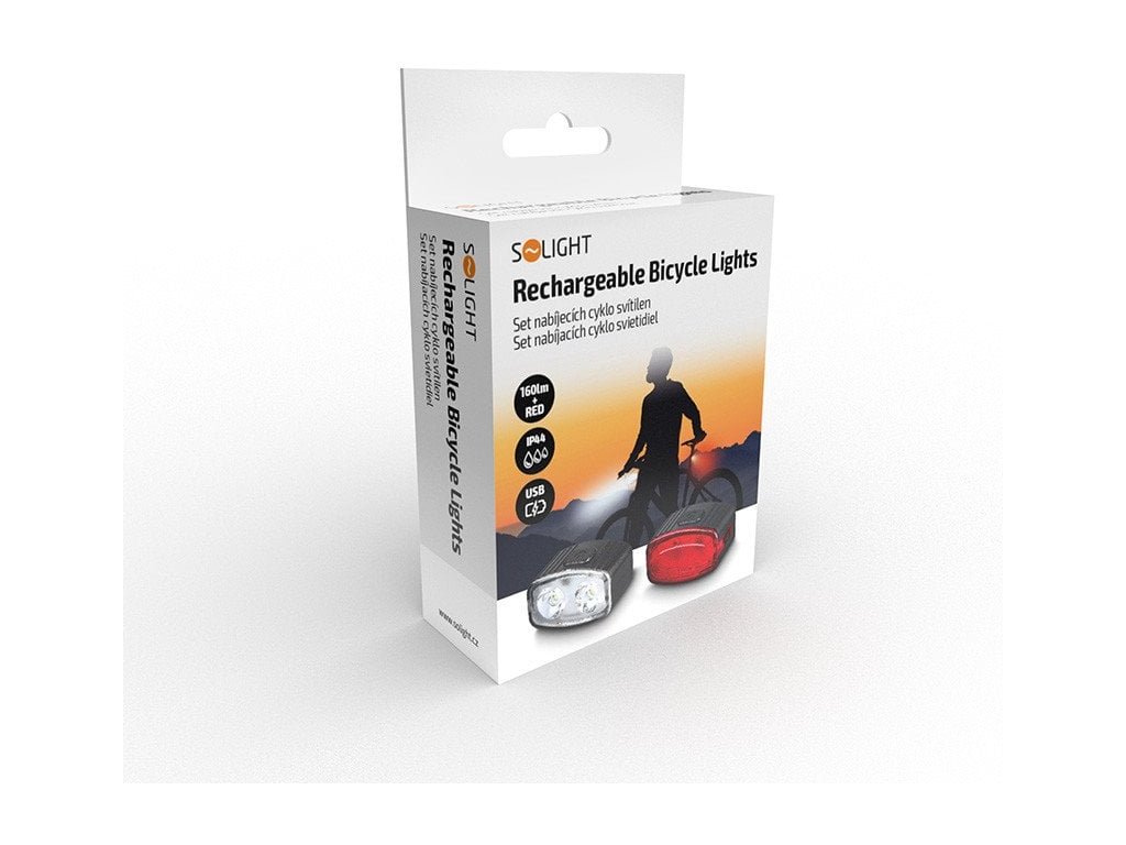 Solight sada dobíjacích svetiel na bicykel, 160lm vpredu, červená vzadu, Li-Ion, USB