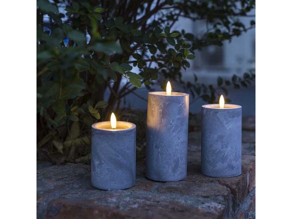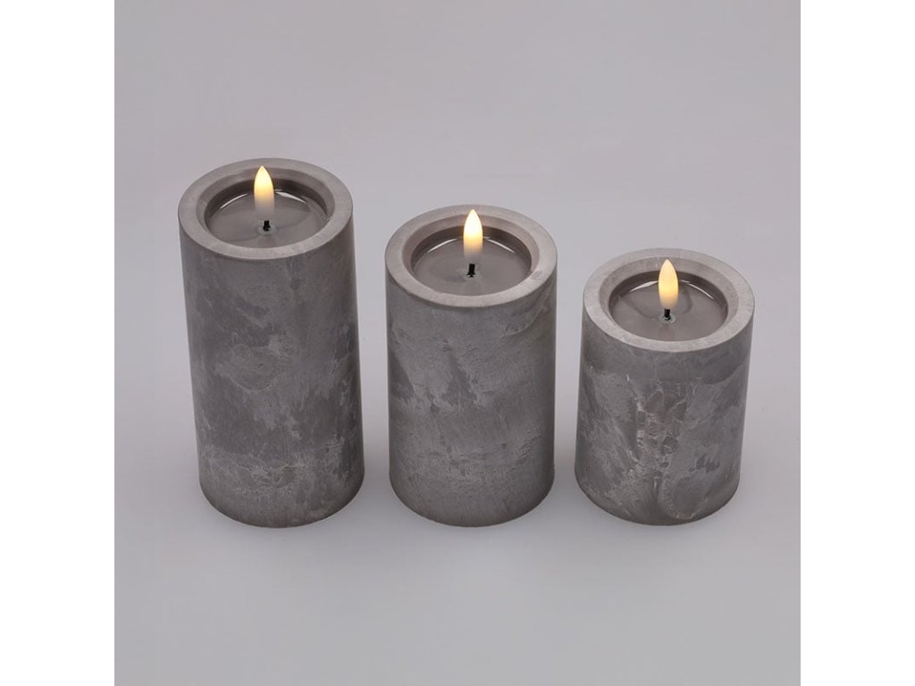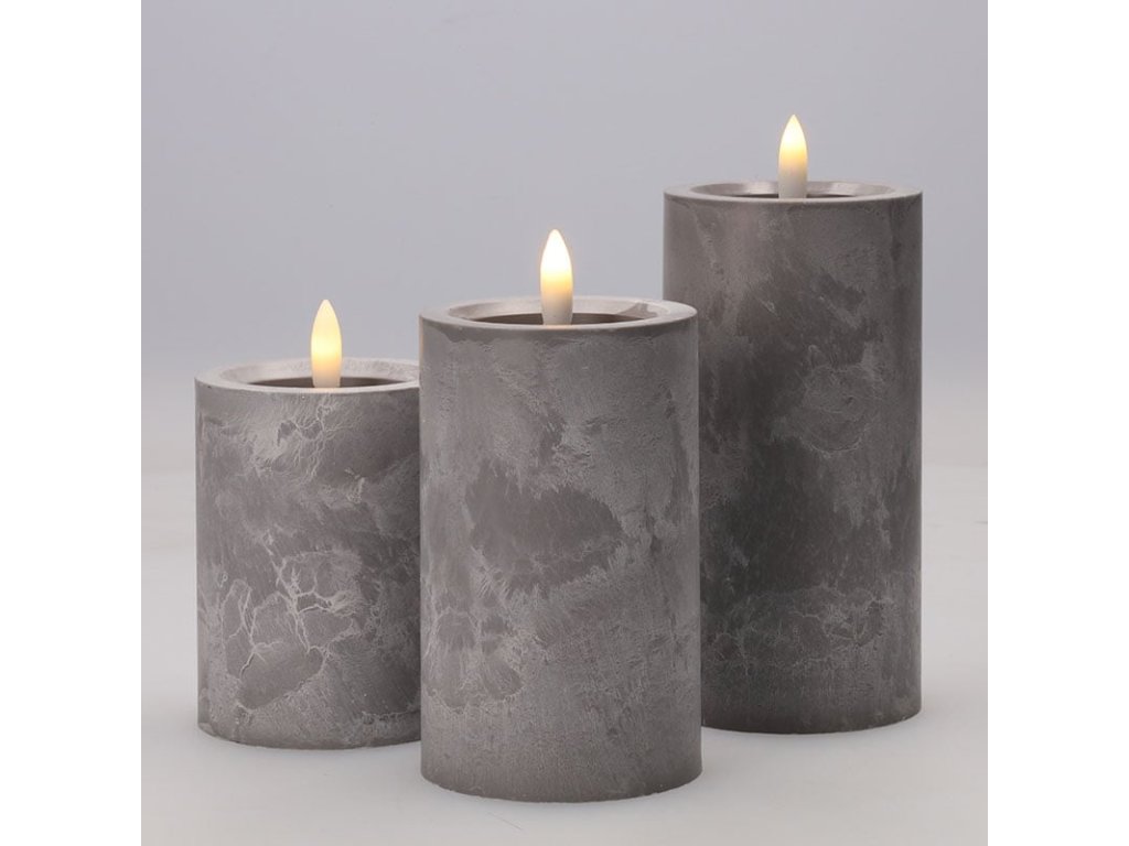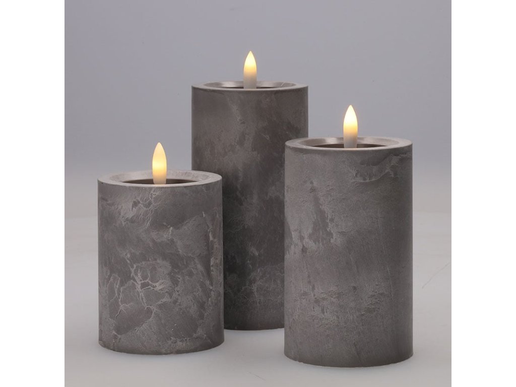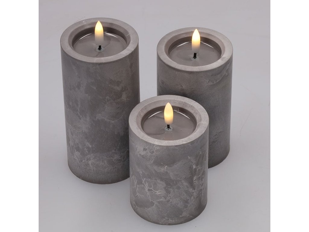 Solight sada LED svíček s časovačem, 3x svíčka, 10/13/15cm, šedá, 2xAA