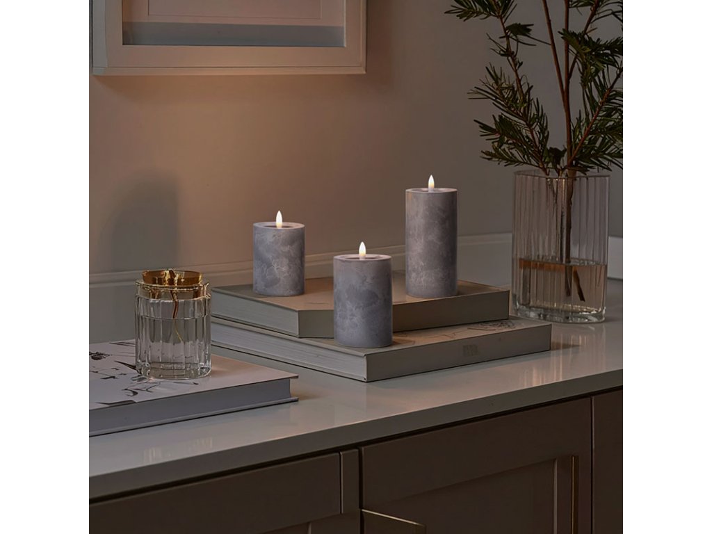 Vytvořte si elegantní atmosféru s LED svíčkami s efektem přirozeně blikajícího plamene a luxusním dekorem šedého mramoru. Tato sada tří svíček vnese do vašeho interiéru moderní a útulný vzhled bez nebezpečí otevřeného ohně. Každá svíčka je vybavena teplým bílým LED světlem, které jemně mihotá a věrně imituje skutečný plamen. Díky praktickému časovači se svíčky automaticky zapnou na 6 hodin a poté se na 18 hodin vypnou, což šetří energii i váš čas. Ovládání je snadné s možnostmi zapnutí, vypnutí nebo aktivace časovače. Svíčky jsou napájeny dvěma AA bateriemi (nejsou součástí balení). Různé výšky svíček – 10 cm, 12,5 cm a 15 cm – dodají vaší dekoraci dynamiku a eleganci. Tyto LED svíčky jsou ideální pro moderní interiéry, večerní relaxaci i slavnostní chvíle. Dopřejte si bezpečné a stylové osvětlení s jedinečným mramorovým designem! sada LED svíček s přirozeně blikajícím plamenem a dekorem šedého mramoru počet svíček: 3 počet LED diod: 3 barva světla: teplá bílá režimy: zapnuto / vypnuto / časovač časovač: 6 hod. zapnuto / 18 hod. vypnuto napájení: 2 AA / svíčka (není součástí) stupeň krytí: IP20 (vnitřní použití) rozměry svíček: průměr 7.5 x 10/12,5/15 cm materiál: plast barva: šedáDodatočné parametre