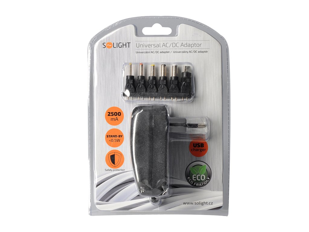 Solight univerzálny napájací adaptér 2500mA, stabilizovaný, vymeniteľné konektory