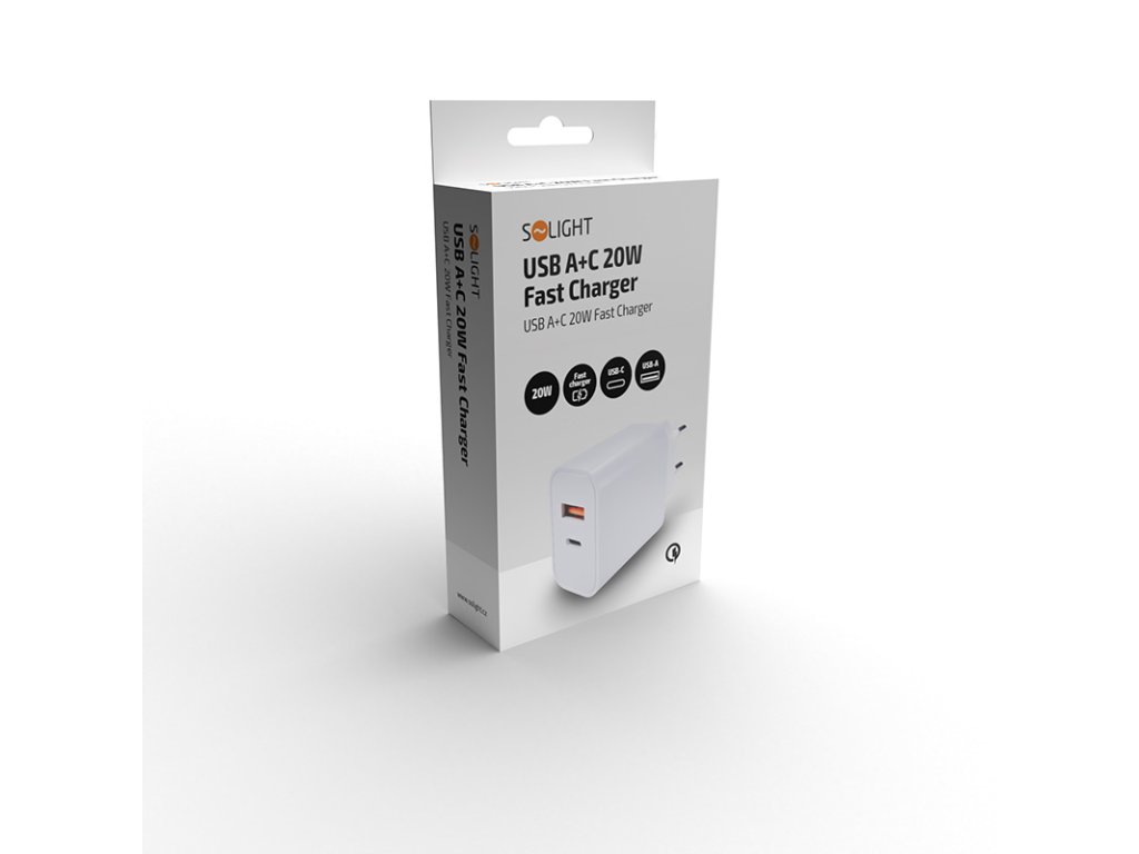 Solight USB A+C 20W rýchlonabíjací adaptér