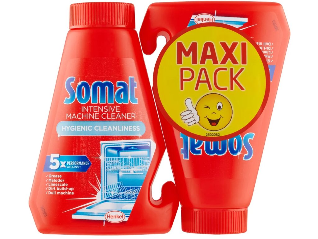 Somat Intensive Dishwasher Cleaner odstraňuje vodný kameň a mastné usadeniny v umývačke riadu, na ostrokovacích ramenách a filtri - pre hygienickú čistotu. Pravidelným používaním (raz za 3 mesiace) je možné predĺžiť životnosť vašej umývačky riadu. Praktická láhev Somat s háčikom je vhodná pre všetky umývačky riadu. Pri používaní čistiaceho prostriedku do umývačky riadu nepridávajte prostriedok na umývanie riadu a nenechávajte riad v umývačke riadu.Dodatočné parametre