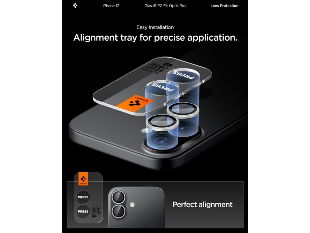 Spigen Glass tR EZ Fit Optik Pro 2 Pack, strieborná - iPhone 17