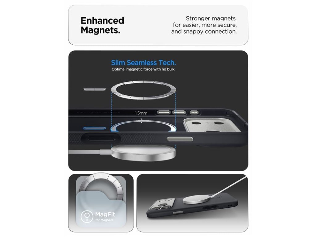 - integrované magnety udrží vaše zařízení v bezpečí a zarovnané a jsou kompatibilní s nabíječkami MagSafe