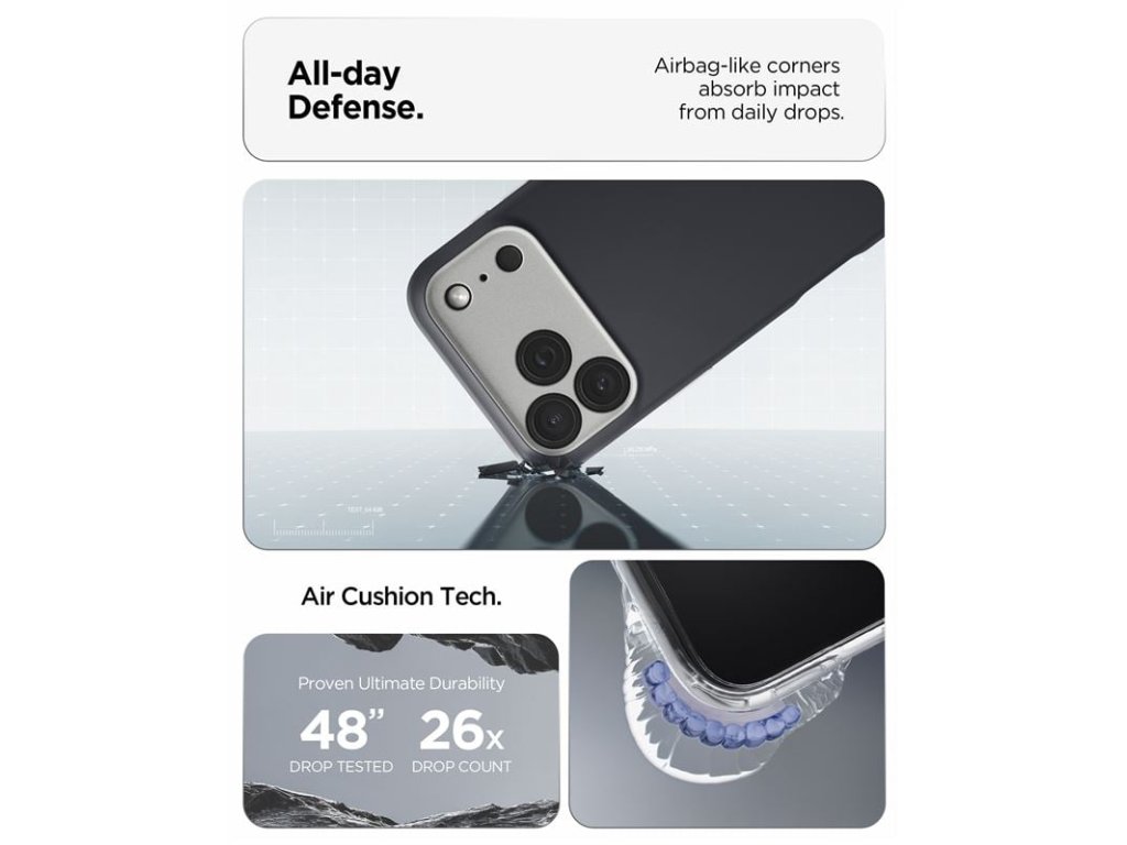 - military grade cerifikace ochrany, kompatibilita s bezdrátovým nabíjením a ochranným sklem displeje