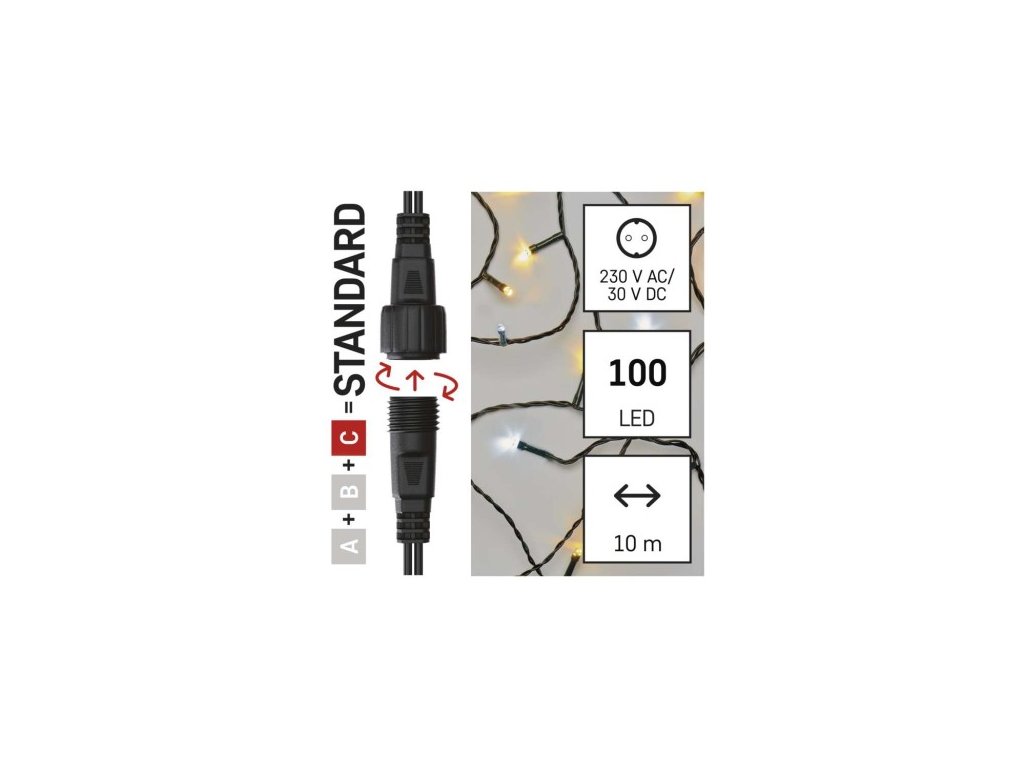 Štandardná spojovacia vianočná reťaz LED, 10 m, vonkajšia, teplá/studená biela