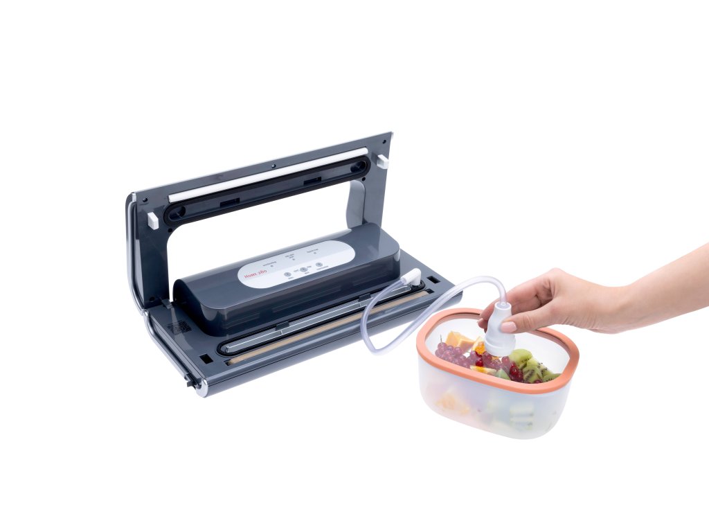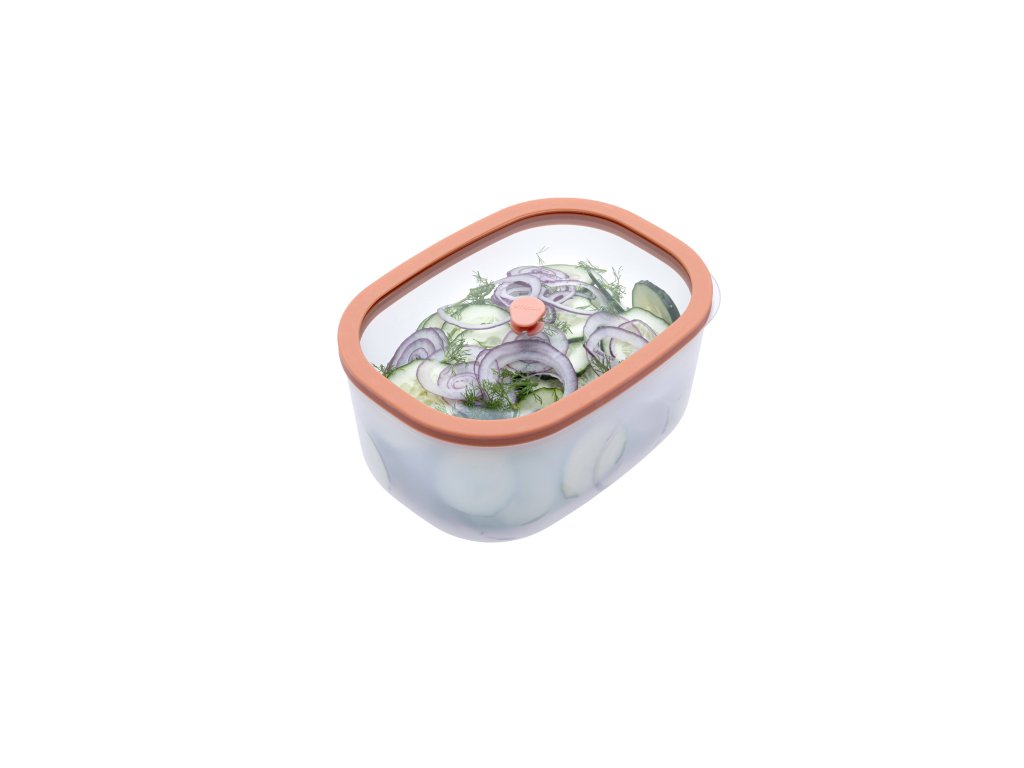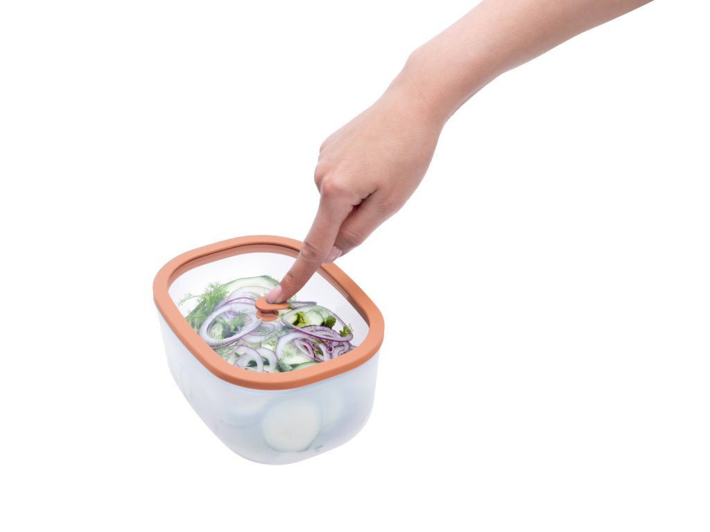 Vákuum predlžuje trvanlivosť potravín až 4-krát (spomaľuje oxidáciu, tvorbu histamínu, rast baktérií a plesní, zachováva vitamíny a minerály)Inovatívny ventil - dvojitá ochrana potravín (stlačením ventilu nádobu uzavriete, pomocou vákuovej pumpy vytvoríte vákuum)
