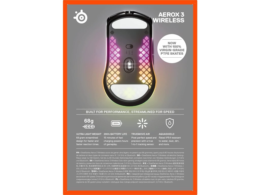 SteelSeries Aerox 3 Wireless Onyx (2022) Ultraľahká konštrukcia s hmotnosťou 68 g pre bezproblémovo rýchle hranie Optimalizovaná výdrž batérie 200 hodín a rýchle nabíjanie cez USB-C Duálne pripojenie prostredníctvom hernej triedy 2,4 GHz a viacúčelového Bluetooth 5.0 Optický herný snímač TrueMove Air s dokonalými pixelmi AquaBarrier™ pre odolnosť voči vode a prachu a ďalšie Keď záleží na rýchlych pohyboch a veľkých pohyboch, ultraľahká konštrukcia myši Aerox 3 umožňuje rýchlejšie a presnejšie reakcie v hre. Bezdrôtové pripojenie Quantum 2.0 Úplne nová bezdrôtová technológia Quantum 2.0 prenáša bezdrôtové dáta neuveriteľnou rýchlosťou stabilnejším, spoľahlivejším a energeticky úspornejším spôsobom ako kedykoľvek predtým. Výdrž batérie 200 hodín Batéria bezdrôtového zariadenia Aerox 3 Wireless, navrhnutá špeciálne na optimalizáciu spotreby energie, poskytuje až 200 hodín nepretržitého používania bez toho, aby sa znížil výkon alebo hmotnosť.Dodatočné parametre