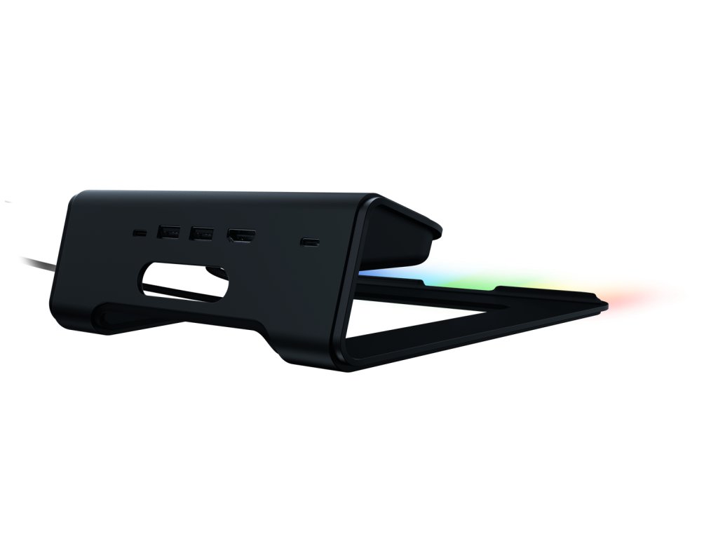 Tento ergonomický stojan na notebook s podporou 13", 15" a 17" notebookov Razer Blade je vybavený jedinečným 4-portovým rozbočovačom USB-C na pripojenie rôznych zariadení, aby bola vaša zostava čistá a pripravená na víťazstvo. Rozbočovač USB-C so 4 portami odomyká rôzne víťazné konfigurácie. plne funkčnému portu USB-C a dvom portom USB-A pre jedinečnú flexibilitu. prezerať v optimálnom uhle pohľadu na dlhodobé používanie. Pre maximálnu mobilitu sme do stojana zakomponovali port USB-C určený na priechodné nabíjanie, aby bol váš notebook nabitý a váš priestor voľný V hre je 16,8 milióna farieb, nespočetné množstvo vzorov, dynamické svetelné efekty. pre herné zariadenia. S podporou rastúceho zoznamu tisícov zariadení a stoviek hier a aplikácií sa posúvajte na vyššiu úroveň vďaka pokročilým funkciám, ako sú Chroma Studio, Visualizer, Connectshop a Workshop. 3.2 Gén 1 - 1x HDMI 2.0 Výstup na displej: Jeden displej (pri HDMI alebo USB-C): - 5k (5120x2880) @ 60Hz - 4k (3840x2160) @ 60Hz - UWQHD (3440 x 1440) pri 100 2 - WQHD (2560 x 1440) @ 175Hz - FHD (1920x1080) @ 144Hz - FHD (1920x1080) @ 360Hz Dva displeje (cez HDMI a USB-C): - Duálne rozlišovanie QHD (2560 x 1440) @ 0 @120Hz - Kompatibilita: Navrhnuté pre notebooky s uhlopriečkou do 17" - Napájanie notebooku (100 W vstup): Až 80 W cez USB-C - Napájanie notebooku (vstup 65 W): Až 46 W cez USB-C - Konektor USB-C pre notebook: 0,85 m - Materiál: 212 mm x 496 mm x 74,3 mm - Hmotnosť: 588 gDodatočné parametre