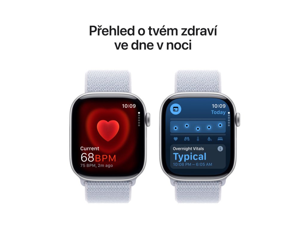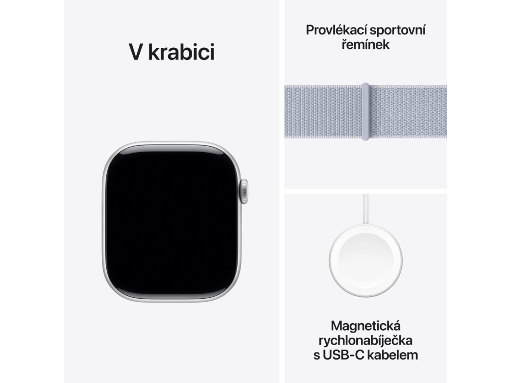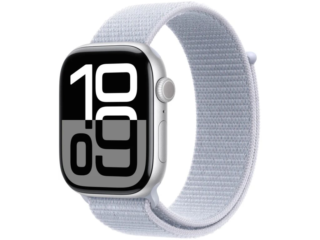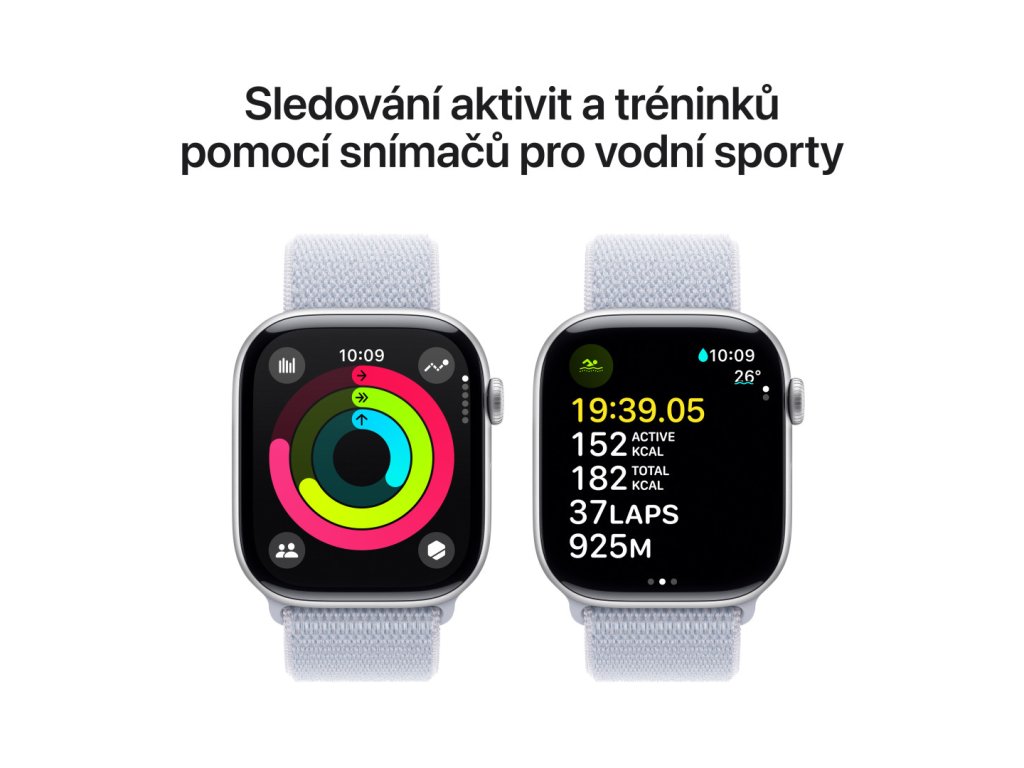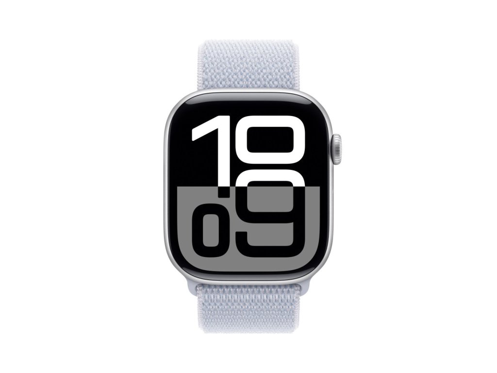 Strieborné hliníkové puzdro Apple Watch Series 10 GPS + Cellular 42 mm so športovou slučkou Blue Cloud (MWX53QC/A)