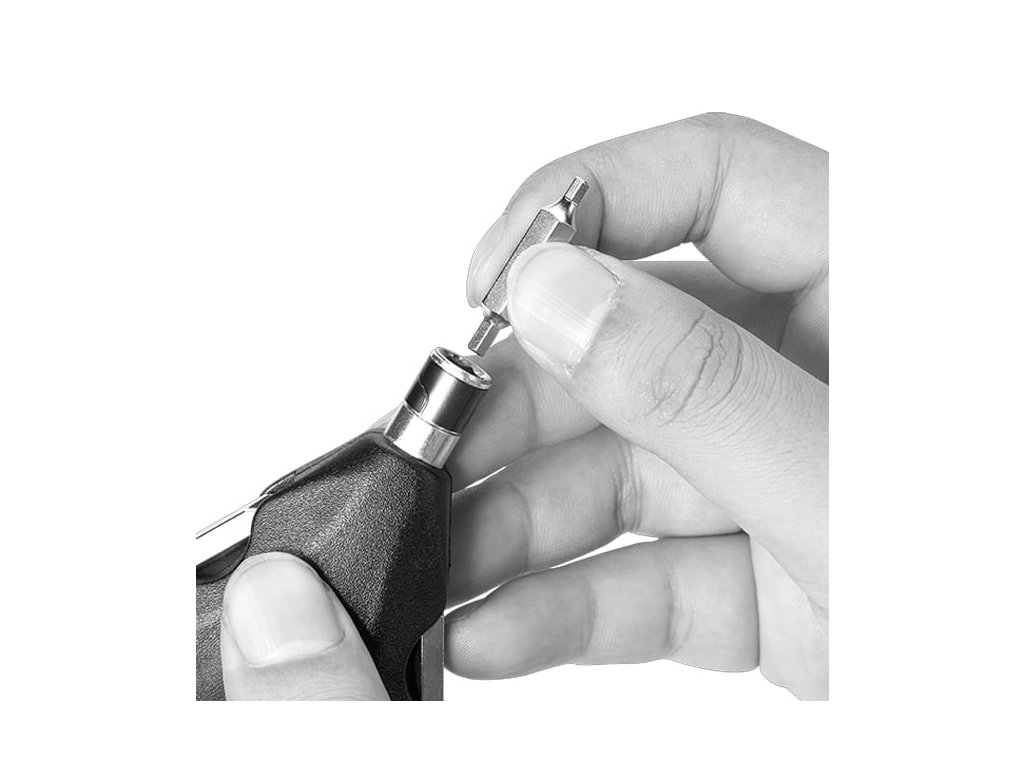Klíč 13 v 1 s oboustrannými bity a praktickým úložným prostorem pro nepoužívané bity Obsahuje: Imbus 2 / 2,5 / 3 / 4 / 5 / 6 / 8 mm, T20 / T25 / T30, PH2, SL4 / SL6Dodatočné parametre