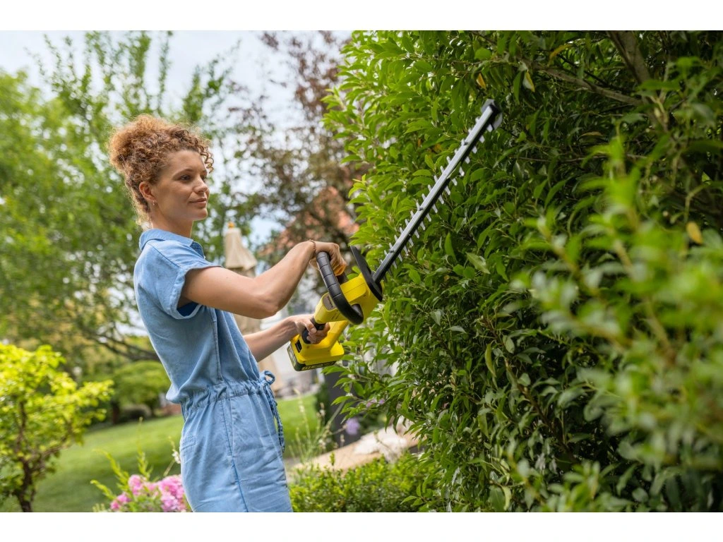 Rukoväť otočná o 180°: rukoväť sa dá plynule otáčať o 180° (v 90° krokoch), čo zabezpečuje prirodzený postoj a pohodlie pre pravákov aj ľavákov pri vertikálnom rezaní.Praktický odnímateľný nadstavec ťahá odstrižky priamo na zem, takže nevisia v plote a uľahčujú následné čistenie.