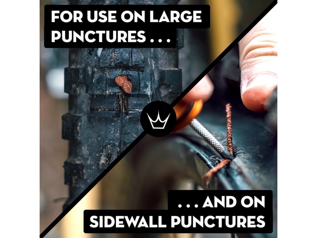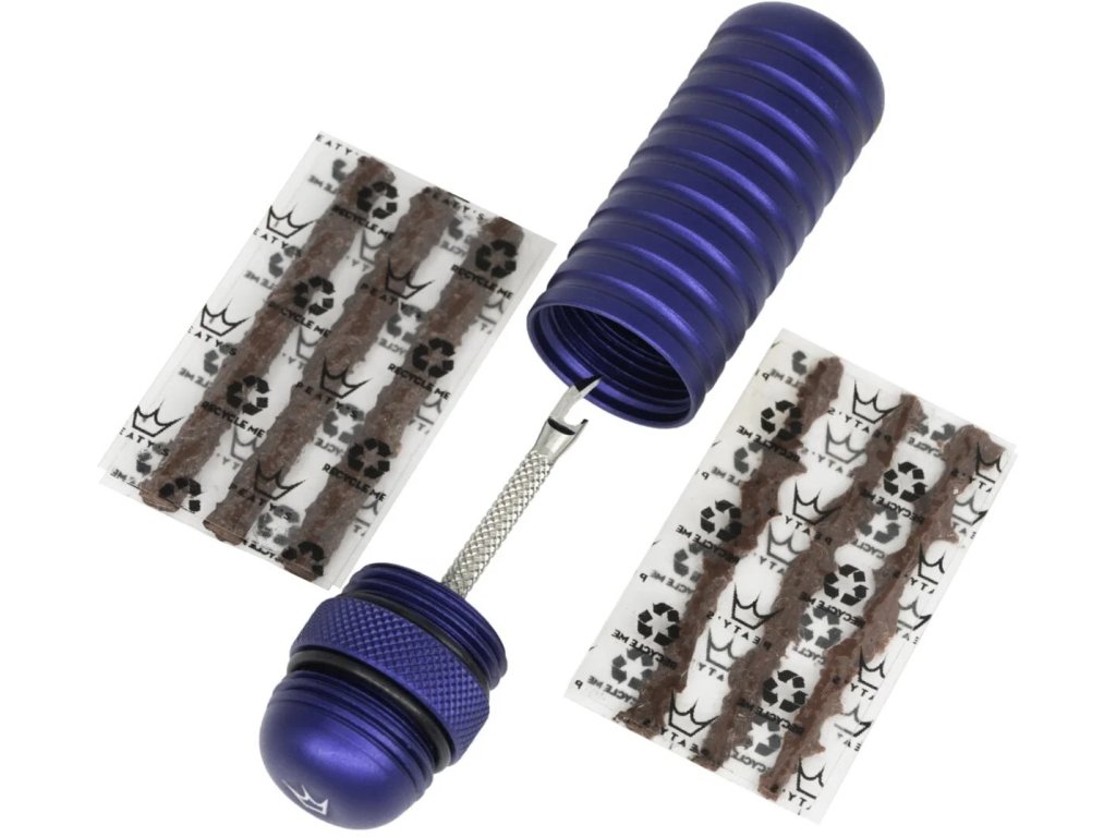 Súprava na opravu bezdušových pneumatik, ktorá sa skladá z hrotu s jedinečným dizajnom, 3 knôtov s priemerom 1,5 mm a 3 knôtov s priemerom 3 mm. Všetko v praktickom a štýlovom dizajne, dostupné v 12 farbách. Telo je vyrobené z eloxovanej hliníkovej zliatiny a hrot je vyrobený z vysoko kvalitnej nehrdzavejúcej ocele 316. Tvar hrotu bol navrhnutý tak, aby spoľahlivým spôsobom prepravil knôt cez plášť, bez toho, aby ho vytiahol späť av neposlednom rade bez zbytočného zväčšovania veľkosti vpichu. K dispozícii v 12 farbách, ktoré sa hodia k výrobkom Chris King. Rýchla a jednoduchá aplikácia vďaka jedinečnej konštrukcii hrotu. Vďaka patentovanému tvaru hrotu zostáva knôt po aplikácii na svojom mieste a po vybratí hrotu sa náhodne nevytiahne. Úzky profil hrotu zbytočne nezväčšuje otvor v plášti počas aplikácie knôtu. Hrot je vyrobený z nehrdzavejúcej ocele 316. Telo je vyrobené z hliníkovej sliatiny 6061 a povrch je eloxovaný. Rukoväť zaručuje pevné uchopenie počas aplikácie. Celá súprava je vodotesná vďaka konštrukcii tela a použitým tesniacim krúžkom.Dodatočné parametre
