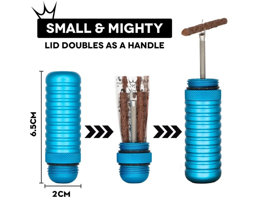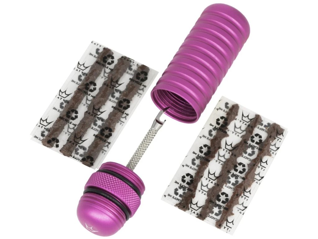 Súprava na opravu bezdušových pneumatik, ktorá sa skladá z hrotu s jedinečným dizajnom, 3 knôtov s priemerom 1,5 mm a 3 knôtov s priemerom 3 mm. Všetko v praktickom a štýlovom dizajne, dostupné v 12 farbách. Telo je vyrobené z eloxovanej hliníkovej zliatiny a hrot je vyrobený z vysoko kvalitnej nehrdzavejúcej ocele 316. Tvar hrotu bol navrhnutý tak, aby spoľahlivým spôsobom prepravil knôt cez plášť, bez toho, aby ho vytiahol späť av neposlednom rade bez zbytočného zväčšovania veľkosti vpichu. K dispozícii v 12 farbách, ktoré sa hodia k výrobkom Chris King. Rýchla a jednoduchá aplikácia vďaka jedinečnej konštrukcii hrotu. Vďaka patentovanému tvaru hrotu zostáva knôt po aplikácii na svojom mieste a po vybratí hrotu sa náhodne nevytiahne. Úzky profil hrotu zbytočne nezväčšuje otvor v plášti počas aplikácie knôtu. Hrot je vyrobený z nehrdzavejúcej ocele 316. Telo je vyrobené z hliníkovej sliatiny 6061 a povrch je eloxovaný. Rukoväť zaručuje pevné uchopenie počas aplikácie. Celá súprava je vodotesná vďaka konštrukcii tela a použitým tesniacim krúžkom.Dodatočné parametre