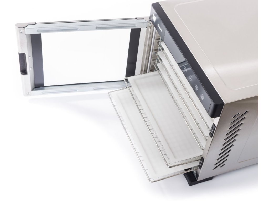 V sušičkách potravín G21 nemusíte sušiť ľan nakrájané potraviny. Vyskúšajte si pripraviť chutnú pochúťku z domáceho jogurtu, ovocnej drene, pasty alebo palaciniek, prípadne nechajte vykysnúť testo. Vďaka sušiacemu zásobníku je to jednoduché a pohodlné. Jednoduché používanie, ľahké čistenie Sušiaci podnos G21 na sušenie tekutých surovin je nepriľnavý, takže sa naň nič neprilepí. S rozmermi 32,5 x 28,5 cm sa krásne zasunie do sušičky G21 Breezer s časovačom. Povrch sušiaceho podnosu je ľahko umývateľný, stačí ho po sušení opláchnuť vodou. Nemusíte odkladať prípravu pochúťok kvôli vyhliadke na následné upratovanie :-) Keď ide o jogurt, najlepší jogurt Domáci! So sušiakom na sušenie tekutých surovin G21 však môžete svoj domáci jogurt vysušiť na zdravú a chutnú pochúťku. So živými kultúrami, po ktorých vaše telo volá. S chutou, ktorej sa jogurt kupovaný v obchode a iné pochúťky nemôžu rovnať. Kvasnicové testo, palačinky a domáce nudle Ale nielen to. Hľa kŕmkavá lahodná pizza, banánové palačinky, pečené müsli, obilné lupienky alebo koláčiky. To všetko môžete po uplynutí nastaveného času vytiahnuť zo sušičky vďaka zásobníku na sušenie tekutin. A s jednou veľkou istotou. Svoje buchty, pečivo, palačinky ani iné dobroty v sušičke nespálite. Špecifikácia Materiál: polypropylén Rozmer podnosu: 32,5 x 28,5 cm Počet kusov v súprave: 6Dodatočné parametre