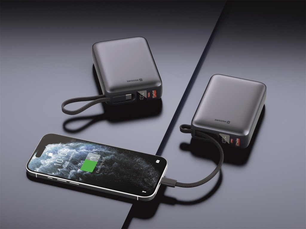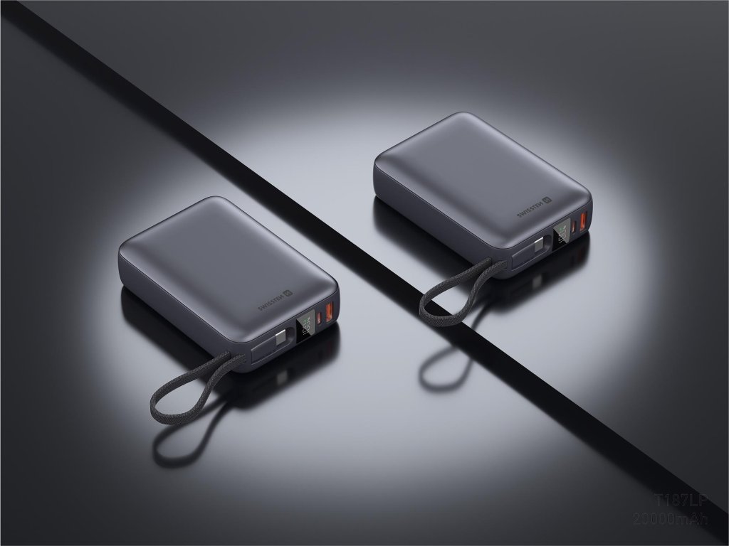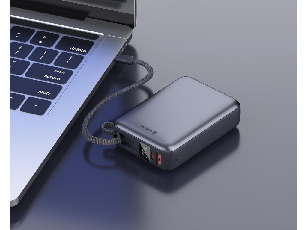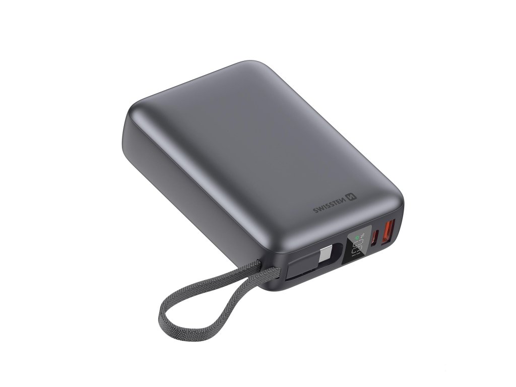 SWISSTEN POWER BANK 20000 mAh 45W S INTEGROVANÝM KÁBLOM USB-C ABSOLÚTNE STRIEBORNÝ