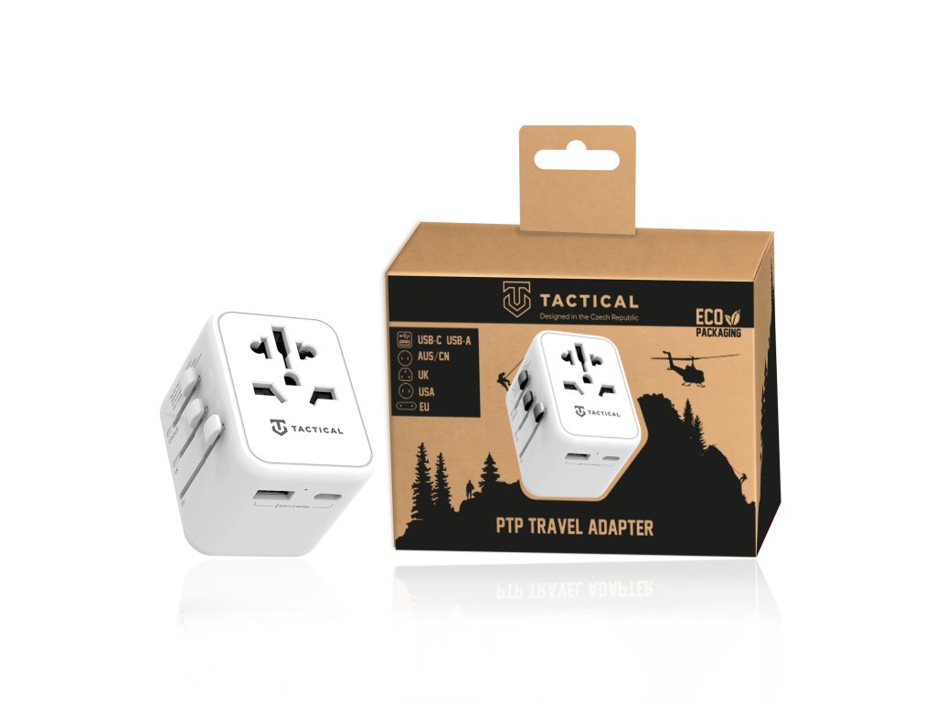 Taktický adaptér PTP, všestranný a spoľahlivý adaptér s nabíjačkou - ideálny spoločník pre vaše ďalšie dobrodružstvo! Cestujte po svete Tento adaptér s nabíjačkou je špeciálne navrhnutý pre nadšencov cestovania a outdoorových nadšencov na celom svete. Vďaka výsuvným kolíkom sa adaptér Tactical PTP Adapter prepína na štyri vymeniteľné zásuvky pre americké, európske, britské a austrálske štandardy zásuviek, takže svoje zariadenia môžete nabíjať kdekoľvek na svete. Navrhnutý s kompaktnými rozmermi a nízkou hmotnosťou, ktoré umožňujú jednoduché cestovanie. Adaptér je vybavený aj univerzálnym vstupom pre nabíjačku. Tento vstup využijete najmä pri používaní zariadení s rôznymi nabíjacími zástrčkami. Kompatibilita Okrem štyroch zásuviek adaptér obsahuje aj port USB-C a USB-A, takže môžete nabíjať viacero zariadení súčasne. Či už potrebujete nabíjať telefón, tablet, fotoaparát alebo iné elektronické zariadenia, táto nabíjačka a adaptér vám poskytne všetko, čo potrebujete. Bezpečnosť Na zaistenie vašej bezpečnosti a bezpečnosti vašich zariadení má adaptér Tactical PTP zabudovaný bezpečnostný zámok, ktorá chráni pred preťažením, skratom a prehriatím. Pre vaše pohodlí nabíjačka obsahuje aj náhradnú zabudovanú poistku. V prípade potreby ju tak môžete jednoducho vymeniť. BE ECO V spoločnosti Tactical máme radi prírodu. Všetky naše výrobky sú balené do ECO krabíc z recyklovaného papiera, aby sme čo najmenej zaťažovali životné prostredie. Myslite na Tactical! KĽÚČOVÉ FUNKCIE Celosvetová kompatibilita Porty USB-C a USB-A Náhradná poistka Nastaviteľná vidlica s normami EU/UK/USA/JAP/AUS/CNY Špecifikácia - Prevádzkové napätie 100-250 V 50/60 Hz - maximálny výkon 12 W - Výstupné na 12 W - Výstupné - Rozmery 69 x 53 x 53 mm - hmotnosť 147 gDodatočné parametre