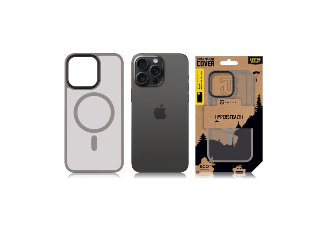 4 farby, priesvitná zadná strana, podpora Apple MagSafe. Tactical MagForce Hyperstealth má jednoduchý farebný dizajn, ktorý sa hodí kamkoľvek a chráni váš iPhone. ČISTÝ DESIGN Čistý dizajn s priehľadným povrchom dodáva puzdru jednoduchosť, ergonomiu a ľahký cieľ. Jadro puzdra je odolné voči nárazom a ochranný plášť chráni displej telefónu pri páde alebo položení telefónu čelom dolom. Dominantný je ochranný rám okolo objektívu fotoaparátu. Rám je o niečo vyššia ako zostava objektívu, čím ho chráni pred poškriabaním a poškodením. MAGFORCE Kryt Tactical MagForce Hyperstealth je vybavený podporou technológie Apple MagSafe. Takže si môžete pokojne užívať bezdrôtové nabíjanie alebo iné magnetické funkcie Apple MagSafe. NEODOLATEĽNE ODOLNÝ V spoločnosti Tactical dbáme na to, aby veci vydržali. Preto tento kryt ponúka len to najlepšie vo svojej kategórii. Použili sme vysoko odolné materiály a aplikovali najnovšie technológie, aby sme získali najlepší výstup ochrany. Váš telefón tak zostane v bezpečí aj v tie najextrémnejšie podmienky. KONEKTORY Vďaka precíznemu dizajnu zostávajú všetky konektory a tlačidlá telefónu prístupné. Spoľahnite sa na kryty Tactical pre absolútnu ochranu. BE ECO V spoločnosti Tactical máme radi prírodu. Všetky naše výrobky balíme do ECO krabíc z recyklovaného papiera, aby sme čo najmenej zaťažovali životné prostredie. Myslite na Tactical! KĽÚČOVÉ FUNKCIE Podpora Apple MagSafe Originálny dizajn Priesvitný dizajn ŠPECIFIKÁCIA Materiál: TPU/ PC MagSafe: Áno Určené pre Apple iPhone 15 Pro Max Farba: svetlosivá svetlosiváDodatočné parametre