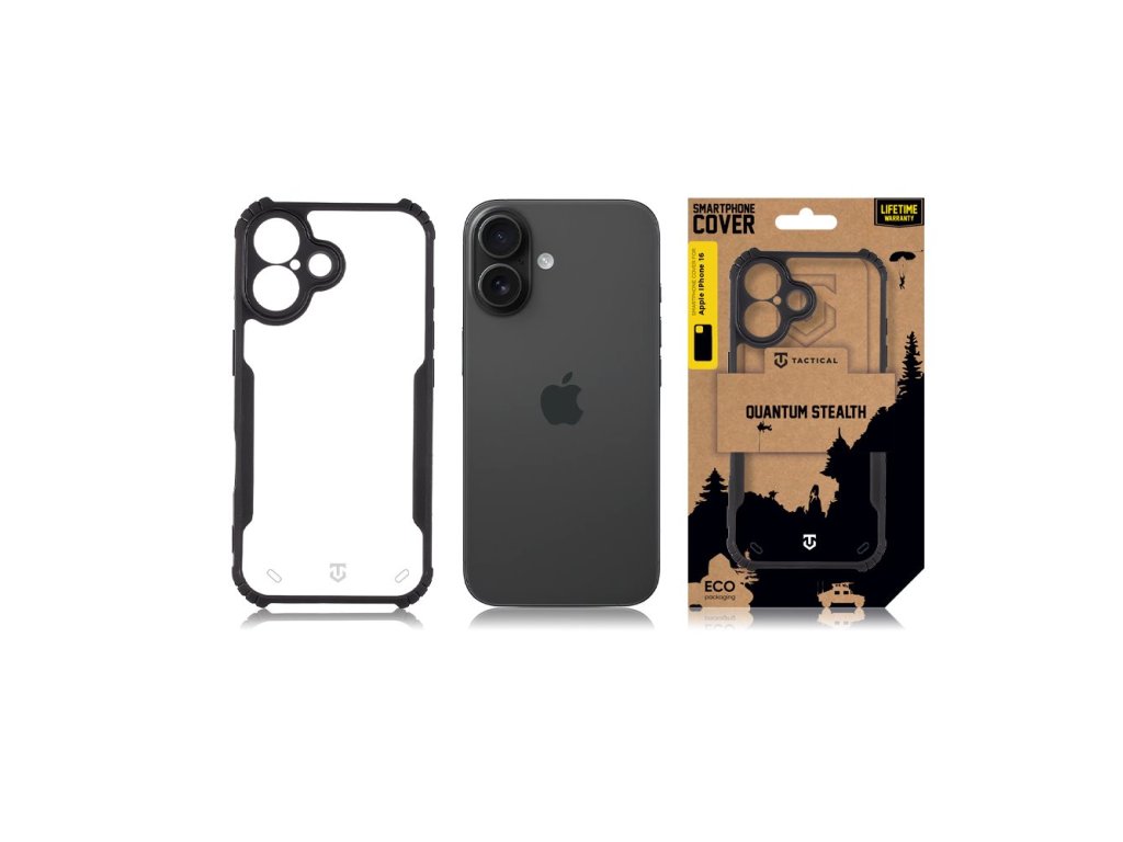 Taktický kryt Quantum Stealth pre Apple iPhone 16 číry/čierny