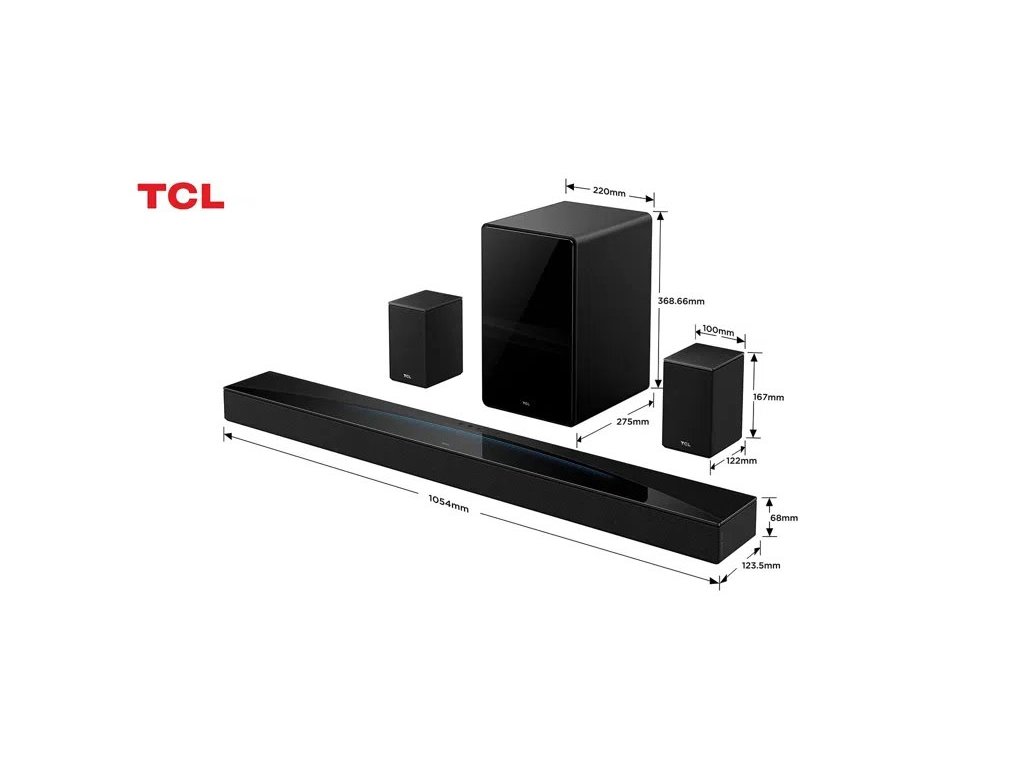 TCL Q85 Series 7.1.4 Soundbar s technológiou Ray-Danz a bezdrôtovými zadnými reproduktormi - Technológia 7.1.4 Ch Dolby Atmos a DTS:X - Technológia Ray-Danz - Kalibrácia AI Sonic-Adaptation - TCL Tutti Choral - Maximálny zvuk Elegantný dizajn so sklenenými prvkami - Inteligentné funkcie pre vaše pohodlie - Nízka odozva pre čo najlepšie pripojenieDodatočné parametre