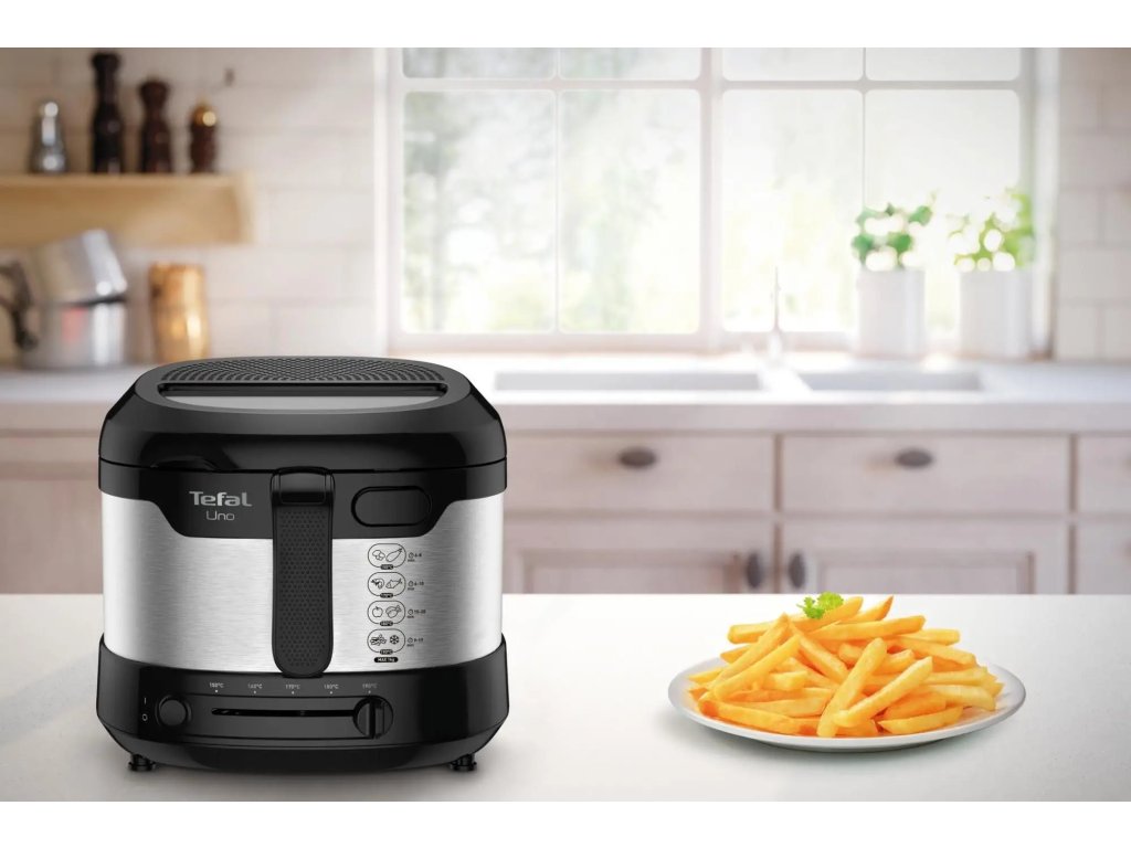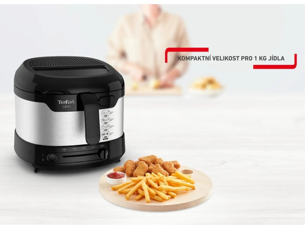 Kľúčové vlastnosti Tefal FF215D30 Fry Uno Kompaktný dizajn Nastaviteľný termostat Automatické otváranie veka Režim odkvapkávania Veľké pozorovacie okienko Kompaktný Fritéza Terfal v kompaktnom prevedení s veľkou kapacitou 1 kg vám umožní pripraviť až 4 porcie naraz. Kompaktný Kompaktné rozmery a skladacia rukoväť uľahčujú skladovanie v každej kuchyni. Režim odkvapkávania Režim odkvapkávania na odstránenie prebytočného oleja z jedla pred podávaním. Termostat Nastaviteľný termostat je ideálny na vyprážanie všetkých druhov potravín a ponúka veľkú flexibilitu. Otváranie veka Automatické otváranie veka ponúka väčšie pohodlí pri používaní. Priehľad Veľký priezor umožňuje sledovať proces varenia. Kompaktné rozmery Veľké pozorovacie okienko na jednoduché monitorovanie Nastaviteľný termostat od 150 do 190 °C Automatické otváranie veka Režim odkvapkávania Technické parametre Príkon 1475 W Kapacita nádoby 1 kg Horúci vzduch č. Dĺžka prívodného kábla 1 mDodatočné parametre