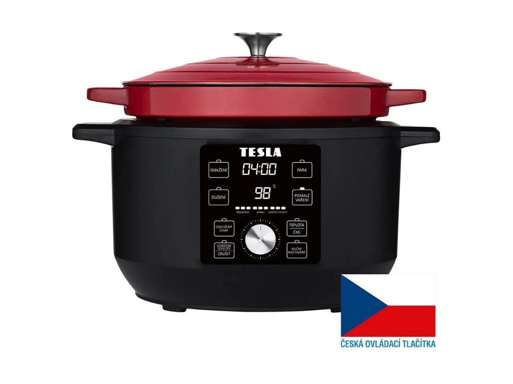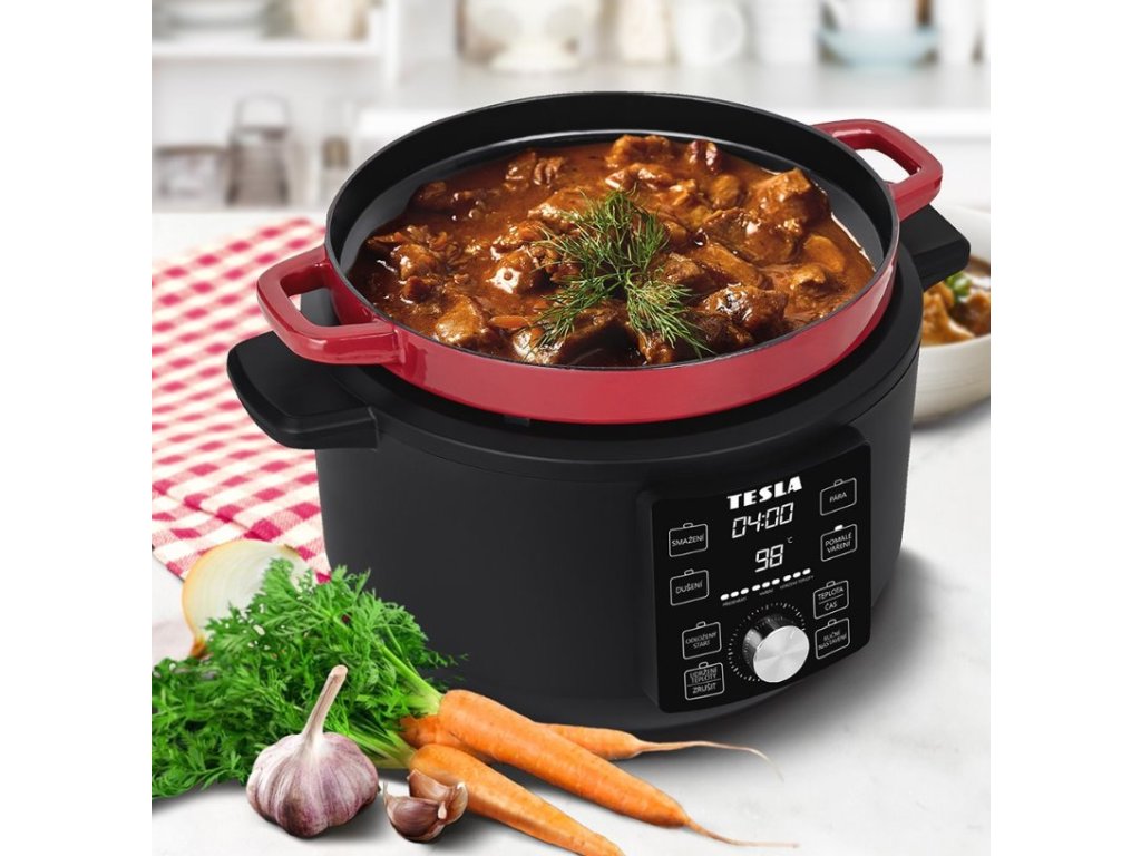 Multifunkčný hrniec 9v1 - smaltovaný liatinový vnútorný hrniec s pokrivkou - ovládacie tlačidlá na prednom paneli v angličtine - ideálny na pomalé varenie, dusenie, vyprážanie, pečenie alebo zapekanie - vhodný do elektrickej, plynovej a teplovzdušnej rúry na pečenie a zapekanie do 25 hrniec sa dá vybrať zo základne hrnca, takže ho môžete používať na indukčných, elektrických a plynových sporákoch alebo v trúbe. Praktická silikónová podložka a silikónové kryty rukovätí umožňujú pohodlné servírovanie jedla priamo na stole. Tento multifunkčný hrniec je pripravený uspokojiť všetky vaše kulinárske potreby a zároveň dodať vašej kuchyni nádych elegancie. Slovenský ovládací panel Ovládacie tlačidlá na prednom paneli sú v slovenskom jazyku, čo zaručuje jednoduché a intuitívne ovládanie vhodné pre všetkých užívateľov bez ohledu na ich skúsenosti s podobnými spotrebičmi. Hrniec je vybavený prehľadným digitálnym displejom s bielym podsvietením a dotykovými tlačidlami na jednoduché a rýchle nastavenie programu varenia. Po dokončení varenia sa aktivuje funkcia "Keep Warm", takže jedlo zostane teplé a pripravené na podávanie. Funkcia odloženého startu Jednou z najpraktickejších funkcií je možnosť odloženého startu. Umožňuje naprogramovať začiatok varenia až 24 hodín predom. Stačí vybrať program, nastaviť jeho hodnoty a potom stlačiť tlačidlo "Odložený start". Pomocou stredového otočného ovládača nastavte čas odloženého štartu a jeho stlačením potvrďte nastavenie. Prvotriedna kvalita pre dokonalé výsledky varenia Smaltovaná vnútorná nádoba varnej desky TESLA MultiCook MC600 Pro zaručuje dlhú životnosť a bezkonkurenčnú schopnosť udržovať a rovnomerne rozvádzať teplo. Vysokokvalitné materiály a spracovanie robia z tohto výrobku ideálneho kuchynského pomocníka pre tých, ktorí chcú dosiahnuť profesionálne výsledky varenia. Nadčasová klasika Vysokokvalitná smaltovaná liatina s vynikajúcou tepelnou vodivosťou a akumuláciou tepla absorbuje teplo a postupne ho odovzdáva pripravovaným surovinám. Tesne priliehajúca pokrievka s výstupkami zaisťuje, že vysrážaná para odkvapkáva späť do liatinového hrnca a vy dosiahnete rovnomerné varenie surovin, ktoré zostanú jemné a šťavnaté. Táto vlastnosť je dôležitá najmä pri pomalom varení, kde je kľúčové správne rozloženie tepla. Ideálne na pečenie Smaltovaný liatinový hrniec je ideálnym nástrojom na pečenie domáceho chleba vo vašej trúbe. Vďaka svojej robustnej konštrukcii a schopnosti udržiavať stabilnú teplotu umožňuje hrniec dokonale upečený chlieb s křupavou kôrkou a vláčnym stredom. Vaša kuchyňa bude nielen voňať čerstvo upečeným chlebom, ale budete si môcť vychutnať aj radosť z domáceho pečenia. Hrniec je možné používať v rúre s teplotou do 250 °C. Nesklame vás pri pečení klasických českých buchiet, skoricových slimákov, koláčikov, broskyňového alebo dýňového koláča a mnohých ďalších. Holandská trúba Holandská trúba, známa aj ako holandský pekáč, je tradičný kuchyňský nástroj, ktorý sa skladá z hrubostenného hrnca s pevnou pokrivkou. Obvykle je vyrobená z liatiny alebo smaltovanej liatiny, ktorá ho dodáva vynikajúce tepelné vlastnosti. Tento typ hrnca sa používa na pomalé varenie, dusenie, pečenie alebo vyprážanie rôznych pokrmov. Jeho uzavretá konštrukcia zabezpečuje rovnomerné rozloženie tepla a udržanie vlhkosti, čím sa dosahujú šťavnaté a chutné výsledky. Holandský hrniec je univerzálna a odolná nádoba na varenie, ktorá je vhodná na použitie na sporáku, v trúbe alebo na varenie venku na ohni či grile. Praktická údržba a vysoká odolnosť Vďaka nepriľnavému povrchu smaltovaného vnútorného hrnca je údržba tohto hrnca jednoduchá a pohodlná. Nepriľnavý povrch zabraňuje pripaľovaniu potravín a usnadňuje čistenie po použití. Okrem toho je hrniec odolný voči poškriabaniu a opotrebovaniu, čo zaručuje dlhú životnosť a trvanlivosť. Vďaka tejto vysokej odolnosti a jednoduchej údržbe získate spolehlivého kuchyňského pomocníka, ktorý vám vydrží dlhé roky. Šetrný k životnému prostrediu Výber elektrického hrnca TESLA MultiCook MC600 Pro je prospešný nielen pre vaše varenie, ale aj pre životné prostredie. Smaltovaná liatina je odolný a ekologický materiál. S týmto multifunkčným hrncom šetríte zdroje a znižujete svoju uhlíkovú stopu. Ideálny darček pre vášnivých kucharov Multifunkčný hrniec TESLA MultiCook MC600 Pro je dokonalým darčekom pre tých, ktorí radi varia a chcú rozvíjať svoje kuchárske zručnosti. Jeho vynikajúce funkcie a pôsobivý dizajn z neho robia darček, ktorý poteší aj tých najnáročnejších kucharov. Potešte svojich priateľov a rodinu týmto luxusným a zároveň praktickým darčekom, ktorý sa stane ceneným a užitočným doplnkom ich kuchyne. 9v1: pomalý hrniec, sous-vide, rýžovar, parný hrniec, varič vajec, ohrievač potravín, panvica na vyprážanie alebo smaženie, sterilizátor, hrniec na dusenie ideálny na pomalé varenie, dusenie, vyprážanie alebo pečenie jednoduchá a presná reguláciaidlá na prednom paneli v slovenčine zobrazenie priebehu varenia (predhrievanie, varenie, udržiavanie teploty) odložený start varenia od 1 minúty do 24 hodín príprava až 8 porcií jedla v jednom hrnci podpora pomalého varenia alebo varenia sous PRÉMIOVÝ LIATÍNOVÝ SMALTOVANÝ HRNIEC S POKRIEVKOU 3 vrstvy smaltu na liatine vynikajúca akumulácia tepla a rovnomerné rozloženie tepla v celom hrnci veľmi vysoká odolnosť voči kyselinám a zásadám hrniec možno používať na elektrickom, plynovom alebo indukčnom sporáku hrniec do 250 °C ideálny na servírovanie na stole veľmi ľahko sa čistí možno umývať v umývačke riadu Špecifikác