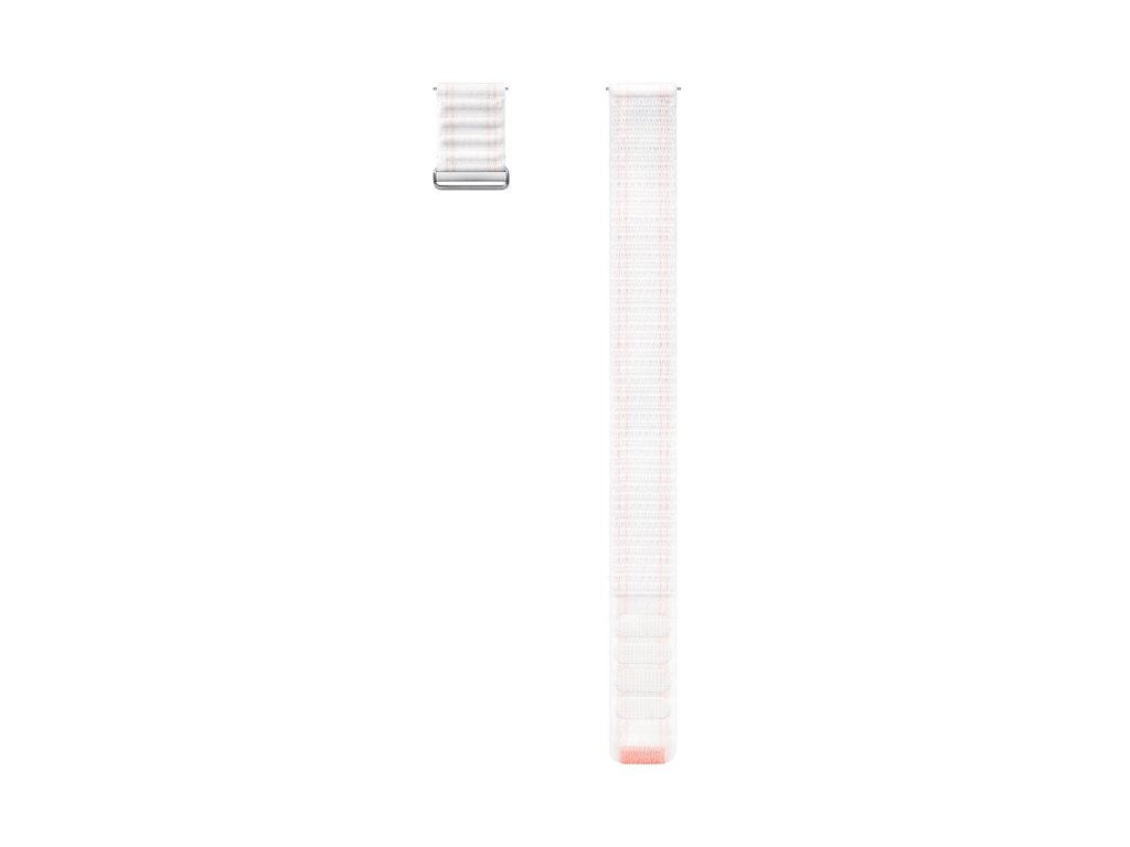 Textilný remienok Samsung (veľkosť S/M) Látkový remienok pre Galaxy Watch7 kombinuje ľahkú tkaninu a ľahko odnímateľnú sponu. Bol navrhnutý s ohľadom na planétu, pretože využíva recyklované materiály s certifikátom UL. Je ideálny na podporu nerušeného a presne monitorovaného spánku alebo tréningu v posilňovni vrátane sledovania vašej rutiny. Náramky ľahko vymeníte a prispôsobíte jediným kliknutím, čím sa stanú jedinečným doplnkom. Či už idete ven alebo ste na cestách, vďaka inovatívnemu tlačidlu stačí jeden rýchly pohyb, aby ste hodinkám dodali nový vzhľad. Kompatibilný s modelom hodiniek: Hodinky Watch4 40mm Watch4 44mm Watch4 Classic 42mm Watch4 Classic 47mm Watch7 ľahkej tkaniny a ľahko odnímateľnej spony ideálne na nerušený spánok ružová a biela farbaDodatočné parametre