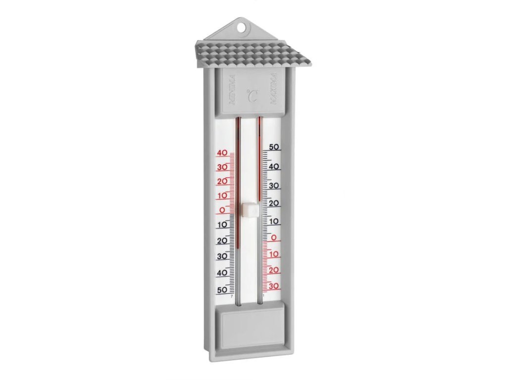 Teplomer na kvapaliny s označením max. a min. teploty. Medzi kapilárami sa nachádza tlačidlo, ktoré zruší označovanie nameraných teplot. Vyrobený z šedého plastu. Kapilára neobsahuje rtuť. Technické informácie: Rozsah merania teploty: -40 °C až +50 °C Rozmery: 230 x 79 mm Hmotnosť: 120 gDodatočné parametre
