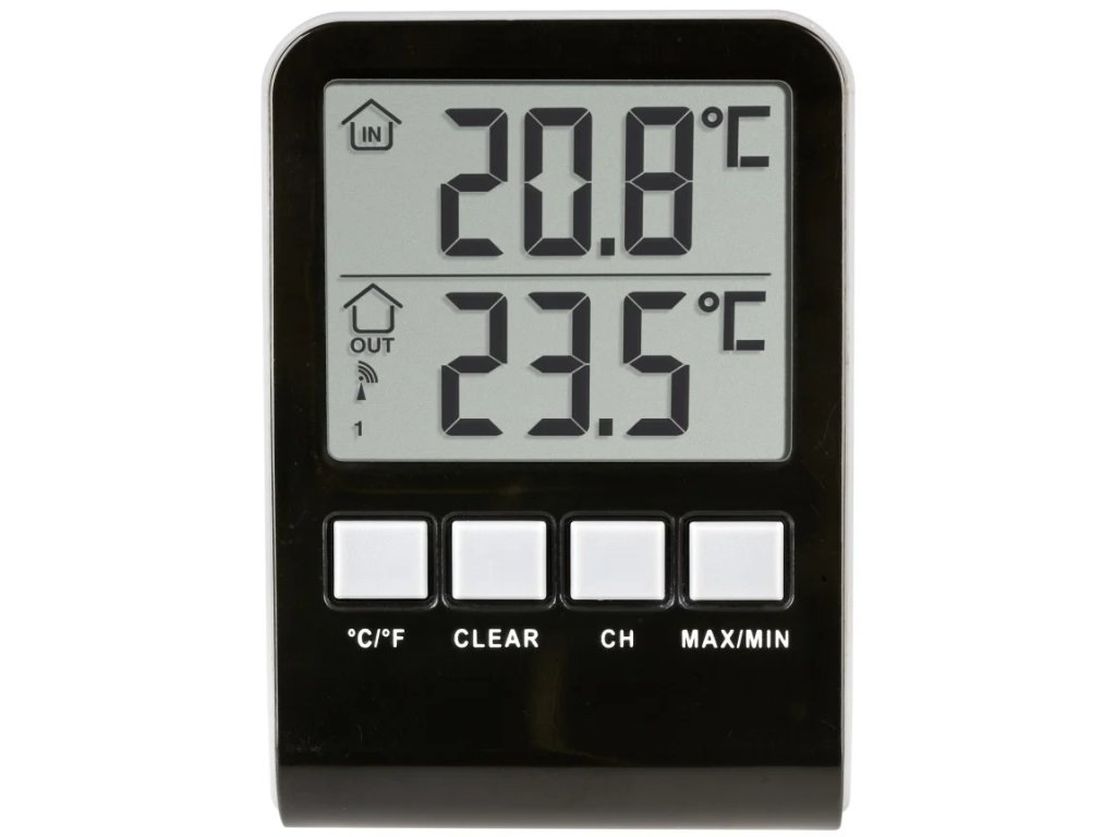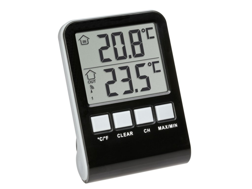 Digitálny teplomer TFA 30.3067.10 PALMA je vybavený bezdrôtovým plávajúcim senzorom na meranie teploty vody. Namerané hodnoty sa prijímajú a zobrazujú prostredníctvom rádiového signálu 433 MHz až do vzdialenosti 60 m. Balenie obsahuje prijímaciu základňu a jeden plávajúci snímač teploty, ktorý je určený na meranie teploty vody 12 cm pod hladinou. Základňa meria teplotu a zobrazuje hodnotu z bezdrôtového snímača na druhom riadku. Voliteľne je možné zakúpiť až 2 ďalšie plávajúce snímače na meranie teploty vody (TFA 30.3240.10) alebo teploty vzduchu (TFA 30.3215.02). Funkcia Pamäť pre maximálne a minimálne hodnoty. Na postavenie alebo zavesenie. Prijíma údaje až z 3 bezdrôtových snímačov. Technické parametre - základňa: Rozsah merania - vnútorná teplota: -10 °C až +60 °C Rozlíšenie teploty: 0,1 °C Presnosť teploty: +/- 1 °C v rozsahu 0 °C až +50 °C, inak +/- 2 °C Napájanie: 2 x 1,5 V AAA (nie sú súčasťou dodávky) Rozmery Hmotnosť: 65 g Technické parametre - plávajúci snímač teploty (TFA 30.3240.10). 60 m Frekvencia vysielača: 433 Mhz Napájanie.Rozsah merania - teplota: -40 °C až +60 °C Rozlíšenie teploty: 0,1 °C Presnosť teploty: +/- 1 °C v rozsahu 0 °C až +50 °C Rozsah merania - vnútorná vlhkosť: 10 - 99 +/- 5 % v rozsahu 20 - 90 % Rozsah na vysielači - max. 60 m Frekvencia vysielača: 433 Mhz Napájanie: 2 x 1,5 V AAA (nie je súčasťou dodávky) Rozmery: 45 x 20 x 108 mm Hmotnosť: 45 gDodatočné parametre