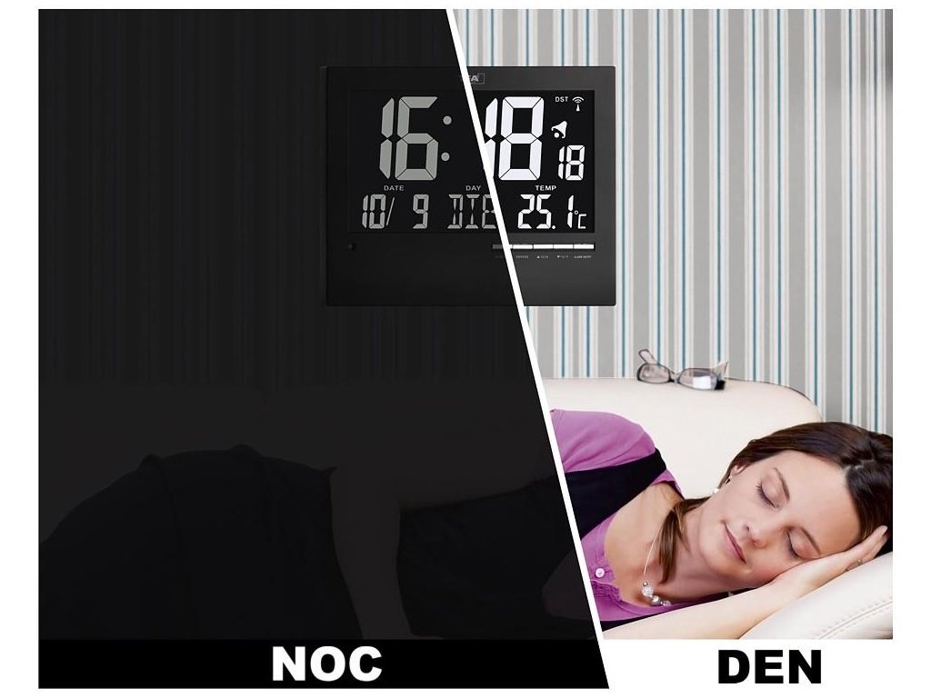 Tieto nástenné hodiny budete mať stále na očiach. Zobrazenie vnútornej teploty, podsvietenie tlačidiel, automatické nočné osvetlenie je len pár funkcií, ktorými vás zaujmú tieto rádiové nástenné hodiny. Vybavenie Rádiom riadené hodiny s najvyššou presnosťou a možnosťou manuálneho nastavenia. Budík s funkciou snooze (opakované budenie). Zobrazenie vnútornej teploty. Vlastnosti Rádiom riadené hodiny s najvyššou presnosťou a možnosťou manuálneho nastavenia. Budík s funkciou snooze (opakované budenie). Zobrazenie vnútornej teploty. Zobrazenie dátumu, času budenia a dňa v týždni (slovensky). Podsvietenie. Stlačením tlačidla alebo trvalo v prípade zapojenia v sieti (voliteľne). Automatické nočné osvetlenie so svetelným senzorom. Na postavenie alebo zavesenie. Rozsah dodávky: DCF nástenné hodiny 2x batérie AA 3x batérie C Návod na obsluhu Technické parametre Rozmery (dx š xv) 185 x 230 x 31 mm Farba ciferníka Čierna Farba Čierna Farba puzdra Čierna Rozmer, výška 31 mm Rozmer, dĺžka Rozmery 185 Rozmer, šírka °C Napájanie Pre podsvietenie: 3x 1,5 V batéria typ C (súčasťou balenia), alternatívne možno aj AC adaptér (4,5 V) - nie je súčasťou balenia. Pre hodiny: 2x 1,5 V batéria typ AA (súčasťou balenia). Hmotnosť (hodnota) 530 gDodatočné parametre