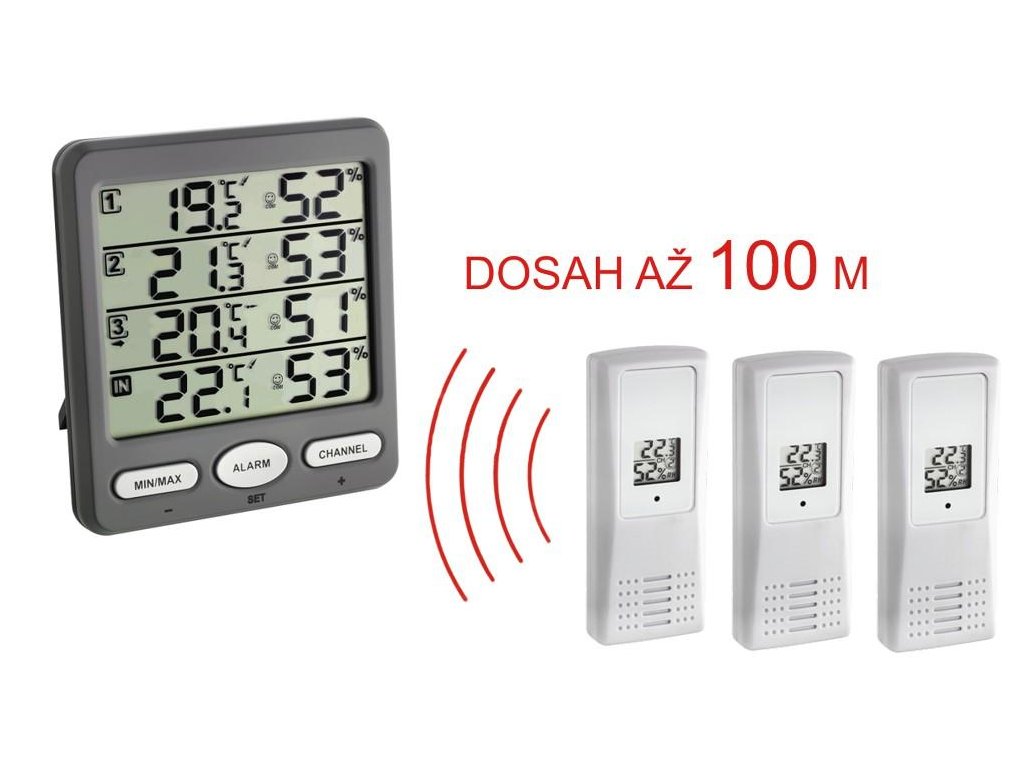 TFA teplomer a vlhkomer s 3 bezdrôtovými senzory 30.3054.10 KLÍMA-MONITOR TFA30.3054.10
