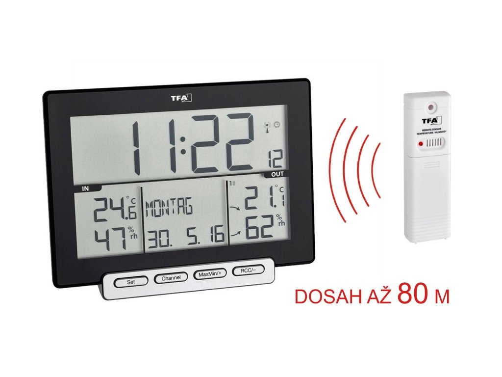 TFA Teplomer a vlhkomer s bezdrôtovým senzorom 30.3058.01 TRINITY TFA30.3058.01