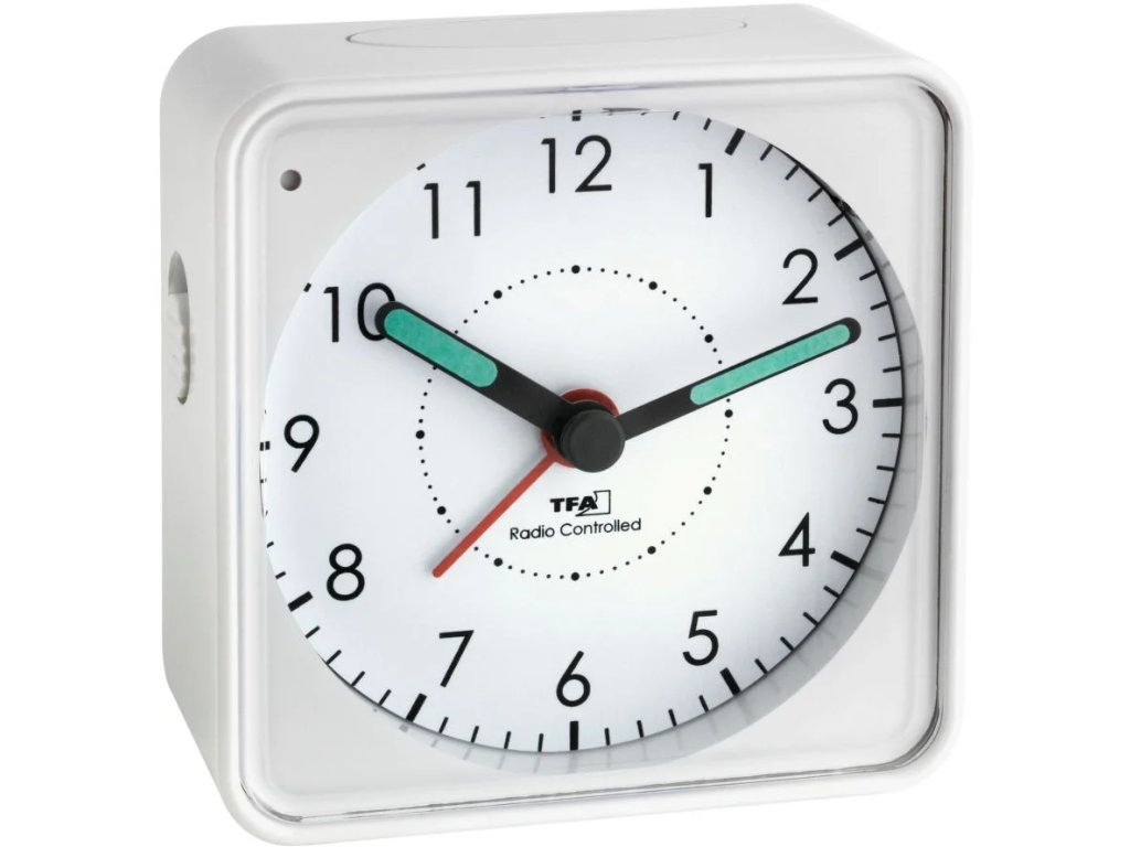 TFA60.1510.02 Analógový budík riadený rádiovým signálom DCF PICCO - biely