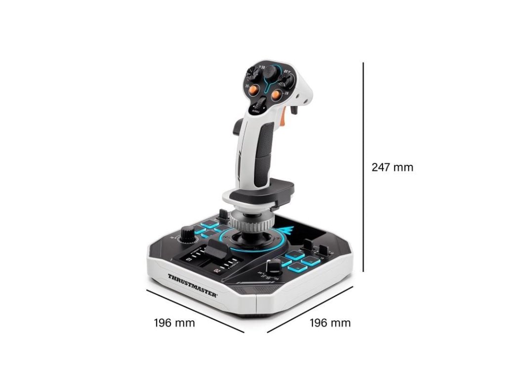 Thrustmaster Sol-R 1 Flightstick - Joystick pro vesmírné průzkumníky a fanoušky realistického leteckého řízení. Sol-R 1 Flightstick od značky Thrustmaster je navržen pro piloty, kteří očekávají nejen špičkovou přesnost, ale také maximální přizpůsobitelnost a komfort. Tento joystick, který lze snadno přizpůsobit pro pravou i levou ruku. Nabízí 44 programovatelných tlačítek, 8 os a vyspělou technologii snímání pohybu, čímž přináší realistický zážitek z řízení ve hrách jako Star Citizen, DCS či Microsoft Flight Simulator. Design inspirovaný sci-fi filmy v kombinaci s RGB podsvícením dodává hernímu prostoru jedinečnou atmosféru. Ergonomické prvky jako vyměnitelné opěrky pro zápěstí a palec, stabilizační podpěry nebo mechanický zámek otáčení dělají z tohoto joysticku zařízení připravené na dlouhé herní seance. Díky široké kompatibilitě s ekosystémem Thrustmaster se Sol-R 1 stává flexibilní součástí jakéhokoli simulátorového setupu. Ať už preferujete stíhačku, nákladní loď nebo vesmírný koráb, tento joystick vás dostane tam, kam míříte – s přesností, kontrolou a stylem. 44 programovatelných tlačítek (21 na gripu, 23 na základně) 8 os včetně přesného X/Y/Z ovládání s H.E.A.R.T. technologií Ergonomický a oboustranný grip s vyměnitelnými opěrkami 11 zón RGB podsvícení ovládaných softwarem Kompatibilita s dalšími gripy Thrustmaster (Viper, Hornet, AVA) PRECIZNÍ A VÝKONNÉ OVLÁDÁNÍ Joystick nabízí tři fyzické osy (X, Y a Z) a pět virtuálních (palcové kolečko, plynová páka, ministick), které jsou snímány technologií H.E.A.R.T. s 16bitovým rozlišením. Umožňuje mimořádně přesné manévrování, ať už ve vzduchu nebo ve vesmíru. Přesné rozmezí ±18° u hlavní osy a ±20° u rotace zajišťuje hladkou odezvu při každém pohybu. Pro potřebu fixního řízení je k dispozici i mechanický zámek osy Z. ERGONOMIE A KOMFORT PRO KAŽDOU RUKU Díky výměnným opěrkám na palec a zápěstí lze joystick přizpůsobit pro praváky i leváky. Stabilitu na stole zajišťují čtyři přiložené podpěry a joystick lze rovněž snadno připevnit na kokpit či montážní systém pomocí předvrtaných otvorů. Dlouhodobé hraní je tak pohodlné a přirozené. PODSVÍCENÍ A STYLOVÝ DESIGN Sol-R 1 přináší atmosféru velkolepých sci-fi filmů přímo na váš stůl. Více než 11 RGB zón je plně konfigurovatelných prostřednictvím softwaru, přičemž ministick se navíc podsvěcuje při použití s AVA základnou. Centrální throttle páka je vybavena vlastní signalizační kontrolkou, která usnadňuje orientaci i za tmy. ROZŠÍŘENÁ KOMPATIBILITA A EKO-SYSTÉM Díky odnímatelnému gripu a podpoře zařízení jako AVA base, Viper HOTAS nebo Hornet HOTAS (případně s adaptérem) je joystick připravený na širokou škálu konfigurací. Kompatibilita se softwarem T.A.R.G.E.T. umožňuje tvorbu a načítání vlastních profilů pro každou loď či letoun. Ovladač je navíc automaticky rozpoznán ve hrách jako DCS, Star Citizen nebo Microsoft Flight Simulator. TECHNICKÁ SPECIFIKACE: PN: 2960920 Design a konstrukce: Vhodný pro praváky i leváky (vyměnitelné opěrky na zápěstí a palec) 4 stabilizační podpěry RGB podsvícení – více než 11 zón ovládaných softwarem Možnost montáže do kokpitu / na stůl (předvrtané otvory) Odnímatelný grip pro výměnu za jiné kompatibilní Thrustmaster gripy Připojení přes odpojitelný USB-C kabel Ovládací prvky: 44 programovatelných tlačítek celkem (21 na gripu, 23 na základně) 2 spouště (z toho jedna dvoupolohová) 2 kloboučkové ovladače (hat switch) 1 ministick (s podsvícením při použití s AVA base) 1 scroll kolečko (thumbwheel) Centrální throttle s indikátorem Možnost deaktivace osy Z (otáčení) pomocí mechanického zámku Počet os: 3 fyzické osy (X, Y, Z) 5 virtuálních os (plynová páka, ministick, thumbwheel) Technologie H.E.A.R.T. (HallEffect AccuRate Technology™) s 16bitovou přesností Rozsah hlavní osy: ±18° Rozsah osy Z (otáčení): ±20° Délka chodu throttle: 22 mm Kompatibilita: PC (Windows® 10 / 11) Automatická detekce ve hrách jako Star Citizen, DCS, Microsoft Flight Simulator Podpora softwaru Thrustmaster T.A.R.G.E.T. (vytváření a ukládání vlastních profilů) Kompatibilita s AVA base*, Viper HOTAS Add-On Grip*, F/A-18C Hornet HOTAS Add-On Grip*, Hotas Warthog base* (s adaptérem*) (*prodáváno samostatně) ROZMĚRY A HMOTNOST Rozměry produktu: Šířka: 196 mm Hloubka: 196 mm Výška: 247 mm Hmotnost: 1270 g Rozměry balení (hlavní karton): 22,1 × 22,3 × 27,8 cm Hmotnost kartonu: 2145 g OBSAH BALENÍ: 1× Thrustmaster Sol-R 1 Flightstick 1× Grip Sol-R 1× Odnímatelná opěrka na zápěstí 1× Opěrka na palec + kryt pro leváky 4× Stabilizační podpěry 1× Odpojitelný USB-C kabelDodatočné parametre
