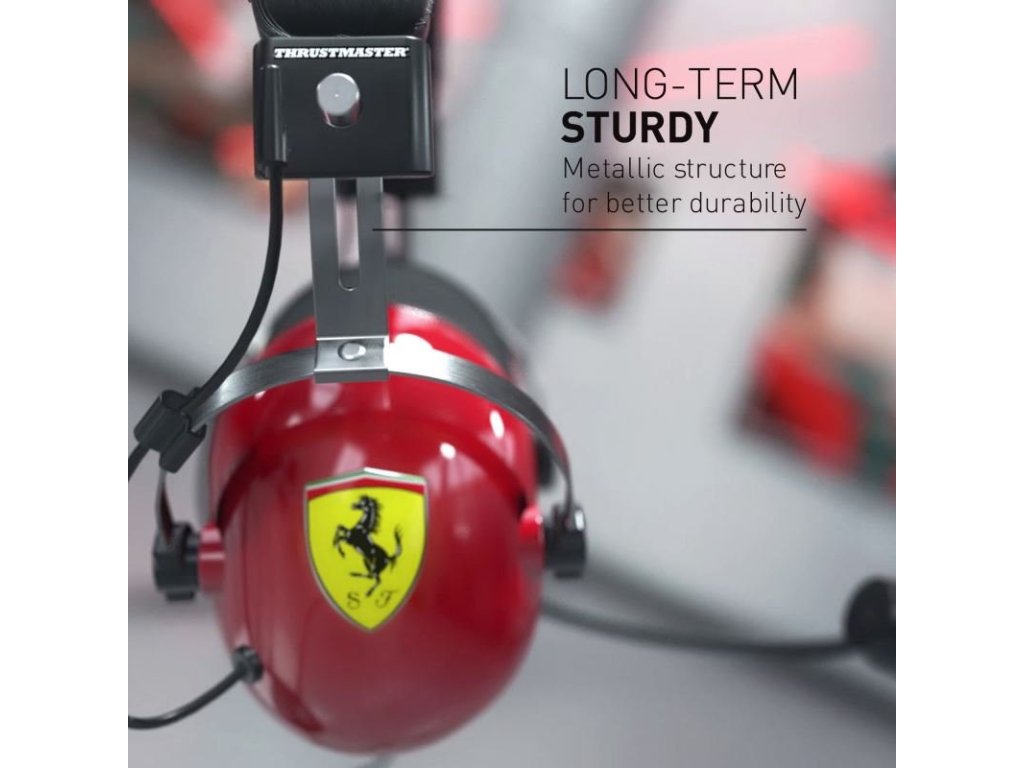Multiplatformový herný headset vyvinutý pod oficiálnou licenciou Ferrari av slávnej športovej farbe Ferrari "Rosso Corsa". T.Racing Scuderia Ferrari Edition je inšpirovaná skutočnou stájkou Scuderia Ferrari a je prvým headsetom od spoločnosti Thrustmaster. Táto náhlavná súprava je vysoko výkonné zariadenie, vyrobené podľa veľmi špecifických kritérií. Bola vyvinutá tak, aby spĺňala potreby pretekárskej komunity s dôrazom na zvukový výkon, a to vďaka použitiu 2"/50 mm analytických meničov, ktoré produkujú priamy zvuk s vynikajúcou kontrolou skreslenia. Realistické ovládanie hlasitosti sa nachádza priamo na náhlavnej súprave a praktické káblové ovládanie mikrotelefónu počas závodov rušiť. Náhlavnú súpravu T.Racing Scuderia Ferrari Edition-DTS možno používať s týmito hernými systémami: PlayStation 4, Xbox One, PC a Switch. pohltenie a poskytuje výrazné posilnenie pre dosiahnutie najlepších časov v závode. (Aplikácia DTS Sound Unbound je k dispozícii pre konzoly Xbox a PC. stabilnej krivky frekvenčnej odozvy s dokonalou rovnováhou medzi basmi, stredmi a výškami pre krištáľovo čistú reprodukciu zvuku poskytuje akustickú spätnú väzbu presne tak, ako to zamýšlali vývojári hier. Výstupný výkon 116 od zvukových mistrov zo spoločnosti Thrustmaster v kombinácii s jedinečným know-how spoločnosti DTS (aplikácia DTS Sound Unbound dostupná pre Xbox® a PC; vrátane používania DTS počas 1 roka). Vysoko výkonný mikrofón: Jednosmerný mikrofón na efektívnu komunikáciu s členmi tímu a tvaru hlavy. Navrhnutý pre optimalizované pohodlie a prispôsobivosť: Výnimočne pohodlné, inšpirované náhlavnými súpravami používanými v skutočných stajniach Scuderia Ferrari: 25 mm hrubé náušníky (okolo uší, uzavreté) z pamäťovej peny a navyše gelová vrstva pre extrémne. izolácia.Až 3 metre kábla je možné prispôsobiť akémukoľvek druhu hernej konfigurácie. Ovládanie hlasitosti na náhlavnej súprave umožňuje hráčovi rýchlo nastaviť úroveň hlasitosti v hre. Nintendo Switch™, PC a Mac®, ako aj s tabletmi a smartfónmi. Rozmery a hmotnosť: 330 x 380 x 220 mm / 452 g Rozmery a hmotnosť balenia: 115 x 235 x 245 mm / 730 g OBSAH BALENIA Náhlavná súprava Stručná príručka, informácie o záruke Kód DTS Headphone:X (pre Xbox® a PC)Dodatočné parametre