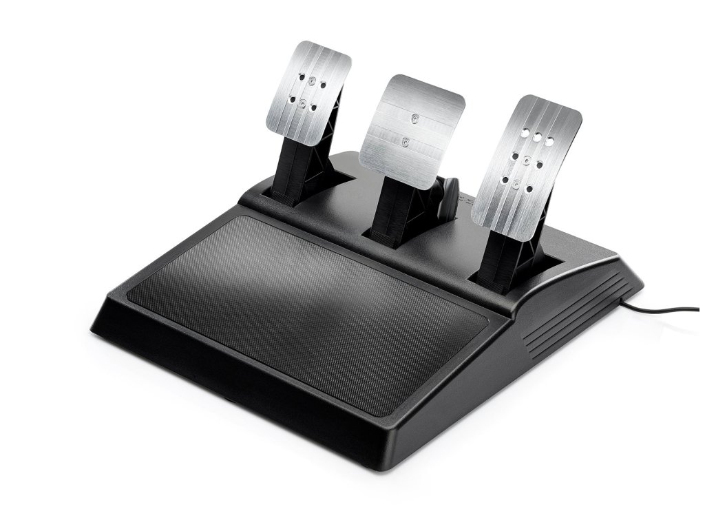 T300 Ferrari GTE predstavuje rovnaké hodnoty ako slávne Ferrari 458 Challenge, ktoré poznajú na závodných okruhoch po celom svete. Je vyrobený meradle 7:10 ako jeho replika. To výkon a presnosť vrátane funkcií pomôžu používateľom zdokonaliť svoje závodné schopnosti a rozbiť medzičasy. Práve preto sa Thrustmaster stal hlavným partnerom BenQ Virtual GP 2015. Všetci profi hráči používajú špičkovú hernú techniku od Thrustmaster. Thrustmaster je priamym účastníkom pretekov a má svojho jazdca aj formulu. T300 Ferrari GTE je závodný simulátor, oficiálne licencovaný pre PlayStation3 (PS3) a PlayStation4 (PS4) a je tiež kompatibilný s PC. Tento fakt určite ocenia používatelia, ktorí potrebujú hrať na rôznych platformách. Spája v sebe silu poskytovanú striedavým priemyselným Force Feedback a novým 1080 ° systémom, čo zaistí super-plynulý a tichý Force Feedback s neuveriteľne rýchlou odozvou a realistickým silovým účinkom. Vývojové tímy Thrustmaster pridali pôsobivú presnosť motora prostredníctvom začlenenia HEART (HallEffect AccuRate Technology ™), s bezkontaktným magnetickým snímačom, ktorý poskytuje 16-bitové rozlíšenie (65,536 hodnôt). T300 má tiež vnútornú pamäť kvôli aktualizácii firmware, takže používatelia budú mať vždy prístup k najnovším aktualizáciám. Volant s pedálmi Thrustmaster T300 RS je top modelom v produktovom portfóliu spoločnosti. Veľmi vysoká presnosť snímania pohybu je zaistená technológiou bezkontaktných magnetických senzorov HEART (HallEffect AccuRate Technology™). Bezkontaktné snímanie je nielen presné, ale má aj vysokú životnosť. Dlhú životnosť poskytuje aj kvalitné kovové prevedenie. Volať s priemerom 28 centimetrov ponúka skvelý pôžitok z jazdy aj vďaka veľmi vysokému rozsahu rotácie až 1080 stupňov (tri plné otáčky). Volant je vybavený autentickou sekvenčnou radiacou pákou a veľmi výkonným a realistickým Force Feedbackom. Realistický volant, ktorý má zosilnené gumové textúry po celom obvode, váži 1,2 kg. Jednou z výhod sady volantu a pedálov T300 RS alebo T300 Ferrari GTE je možnosť upgrade jednotlivých komponentov. Hráči si môžu vybrať zo širokej ponuky doplnkov (addónov) na získanie najlepšieho závodného volantu na trhu. Pretekár môže začať u pedálov a vybrať si medzi T3PA alebo T3PA PRO. Kovové a plne tlakovo nastaviteľné pedále s progresívnym odporom ponúkajú realistický pocit z jazdy. Spojkový pedál je samozrejmosťou. Naozajstnému pretekárovi nemôže chýbať ani radiaca páka. V prípade Thrustmaster sa jedná o realistickú radiacu páku TH8A so 100% kovovým vnútorným mechanizmom, nastaviteľným odporom radenia, odnímateľnou hlavicou umožňujúcou výmenu za reálnu hlavicu a samozrejme plne programovateľnú. A nakoniec je na rade samotný volant. Každému hráčovi vyhovuje iný a preto Thrustmaster ponúka niekoľko exkluzívnych volantov, vrátane repliky F1 volantu. Hráči si môžu zvoliť kožený volant TM Leather 28 GT, repliku volantu Ferrari 458 Challenge, prípadne Ferrari 599XX EVO 30 a pre skutočných znalcov je tu potom replika z Ferarri F1. Vlastnosti: Dve kovové radiacej páky dlhé 13cm umožňujú skvelé radenie a obsahujú dotykové spínače so životným cyklom cez 10 000 000 aktivácií. 13 akčných tlačidiel (vrátane dvoch na základni) + 1 D-Pad Trojpolohový Manettino® ciferník s tlačnou funkciou v strede Dvojica pedálov v kovovom prevedení s dostatočne vysokou hmotnosťou pre zaistenie dokonalej stability. Pedále majú plne nastaviteľnú výšku a vzdialenosť (6možných pozícií pre každý pedál). Brzdový pedál je vybavený zosilneným a nastaviteľným odporom pre maximálnu realistickosť pocitu z jazdy. ECOSYSTEM: je kompatibilný so všetkými v súčasnosti dostupnými závodnými volantmi.Dodatočné parametre