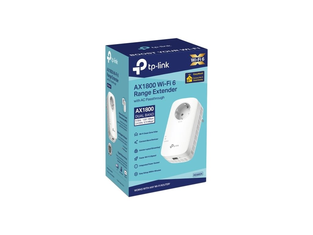 TP-Link RE660XRozšíri vašu domácu Wi-Fi s rýchlosťou až 1,8 Gb/s a podporou Wi-Fi 6.