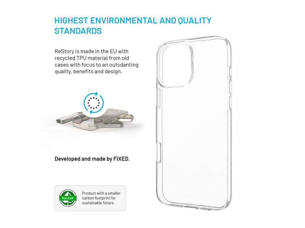 Priehľadný kryt FIXED ReStory TPU je vyrobený z recyklovaného materiálu, ktorý spája ekologickú udržateľnosť s vysokou kvalitou. Recyklovaný kryt je na nerozoznanie od nového krytu TPU a zároveň poskytuje telefónu úplnú 360 ° ochranu pred nárazmi, škrabancami a nečistotami. Každý kus je vyrobený pre konkrétny typ zariadenia, takže výrezy presne kopírujú konektory, tlačidlá a fotoaparát. Zvýšené okraje okolo displeja a fotoaparátu poskytujú dodatočnú ochranu pred poškriabaním. Priehľadný dizajn dá vyniknúť vzhľadu vášho telefónu a pridaná ochrana Anti-UV zaručuje, že si zachová svoju priehľadnosť aj po dlhšom používaní. Protismyková úprava pre pevnejší úchop znižuje riziko náhodného vykĺznutia z ruky. Kryt je navyše plne kompatibilný s ochranným sklom a bezdrôtovým nabíjaním. Rovnaký ako ostatní, ale recyklovaný: Značka FIXED ReLeaf vyrába kryt ReStory, ktorý na prvý pohľad vyzerá ako každý iný, ale je vyrobený z nepredaných krytov, ktoré by inak skončili ako odpad. Namiesto toho, aby sa tieto kryty zlikvidovali, sú recyklované a prerobené na nové. Celý proces recyklácie, výroby a balenia prebieha v Česku, čo výrazne znižuje uhlíkovú stopu v porovnaní s krytmi dovážanými zo vzdialených častí sveta. Vlastnosti: - 100% priehľadnosť, na nerozoznanie od nového krytu z TPU - Anti-UV ochranná vrstva proti zožltnutiu vplyvom slnečného žiarenia - 360 ° ochrana telefónu pred nárazmi, poškriabaním a nečistotami - Presné otvory a výrezy prispôsobené zariadeniu - nezakrývajú nabíjacie konektory ani fotoaparát na ochranu pred poškriabaním - Protismyková úprava pre lepšie uchopenie a zníženie rizika vypadnutia telefónu z ruky - Kompatibilný s ochrannými brýľami - Kompatibilný s bezdrôtovým nabíjaním - Vyrobené z 20% recyklovaného TPU z nepredaných krytov - Uhlíková stopa znížená o 36% v porovnaní s materiáli zabezpečujú rovnakú kvalitu pouzdra ako pri úplne novom materiáli TPU - vyrobené a zabalené v Českej republice - Produkt s certifikátom ISCC - vyvinutý a vyrábaný spoločnosťou FIXEDDodatočné parametre