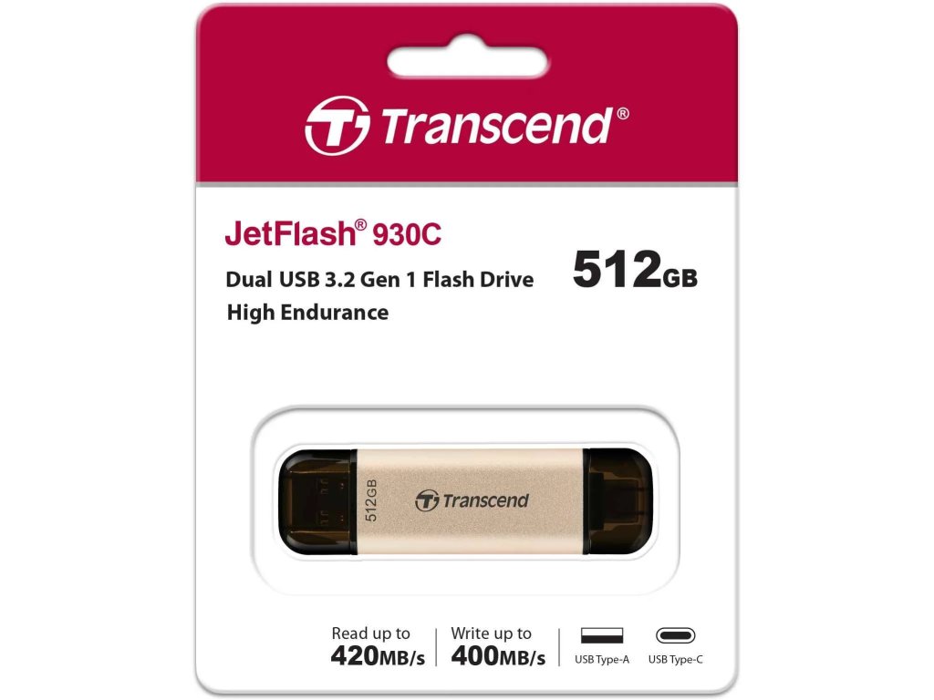 Transcend JetFlash 930C 512 GB, duálny flash disk USB-C/USB 3.2 (Gen 1), 420 MB/s R, 400 MB/s W, zlatýDodatočné parametre