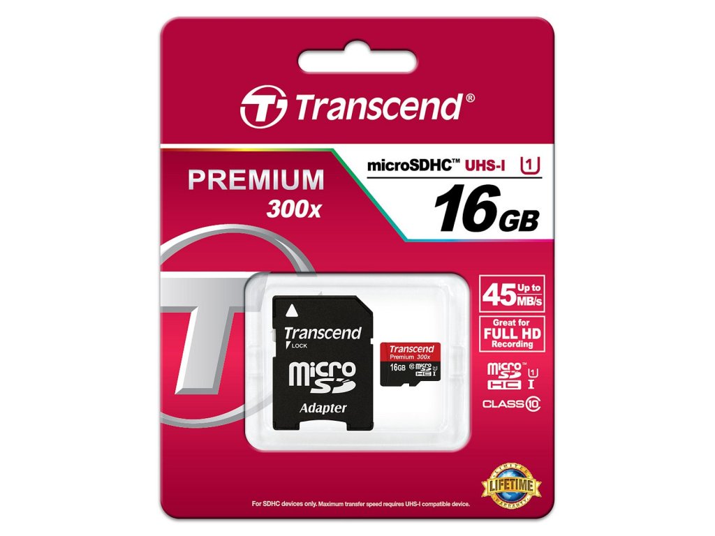 Transcend microSDHC 16GB Class10 UHS-I Premium + adaptér TS16GUSDU1