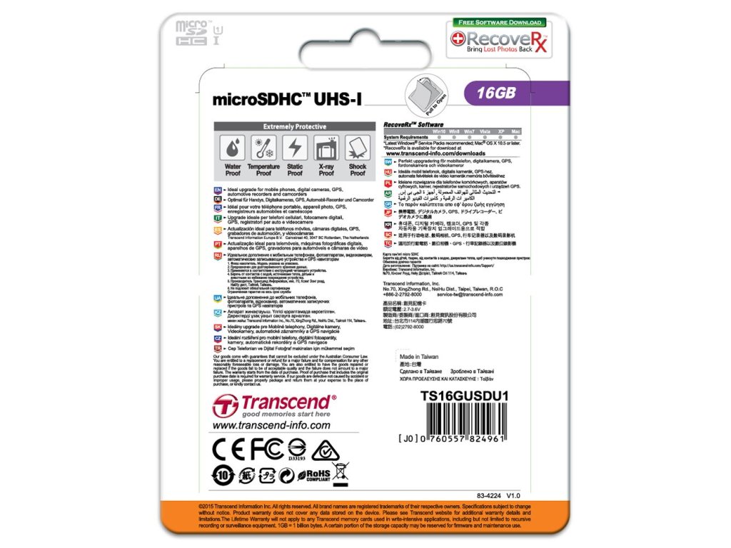 Ultra rýchla SD karta špecifikácie UHS-I (Ultra High Speed Class 1). V prevedení micro s adaptérom na štandardnú veľkosť- UHS-I (Ultra High Speed Class 1) (rýchlosť až 60MB/s - konkrétna rýchlosť vždy záleží na použitom zariadení, pre dosiahnutie max. rýchlostí je nutné používať kartu v zariadeniach, ktoré vedia využiť špecifikáciu UHS-I