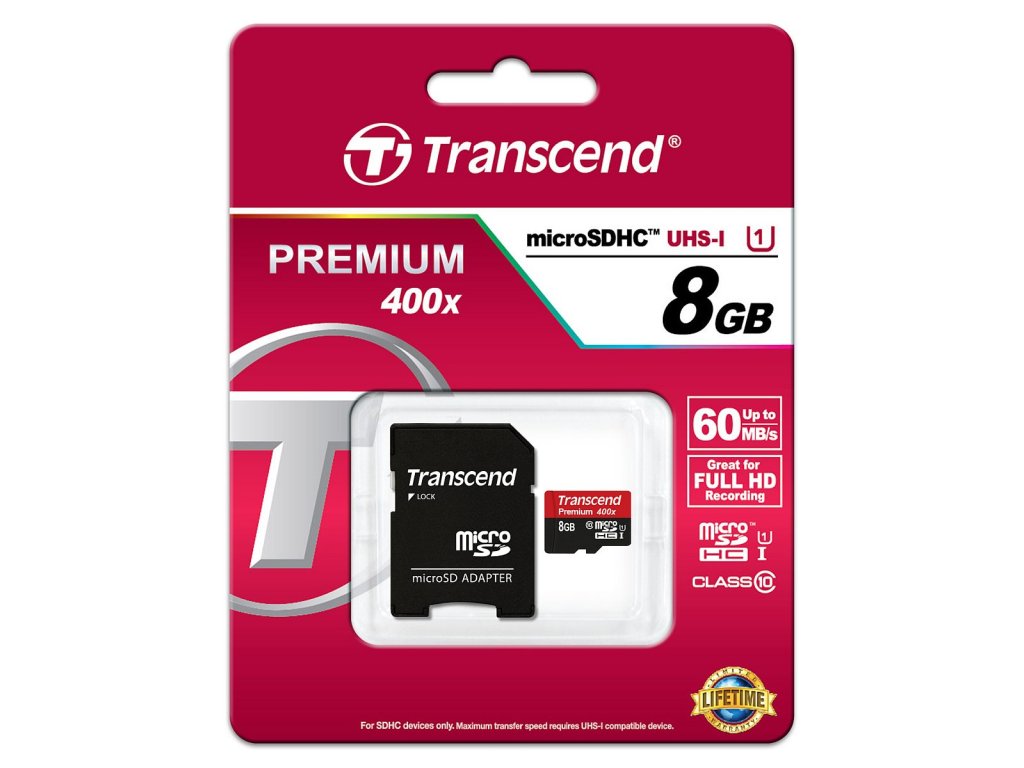Transcend microSDHC 8GB Class10 UHS-I Premium + adaptér TS8GUSDU1
