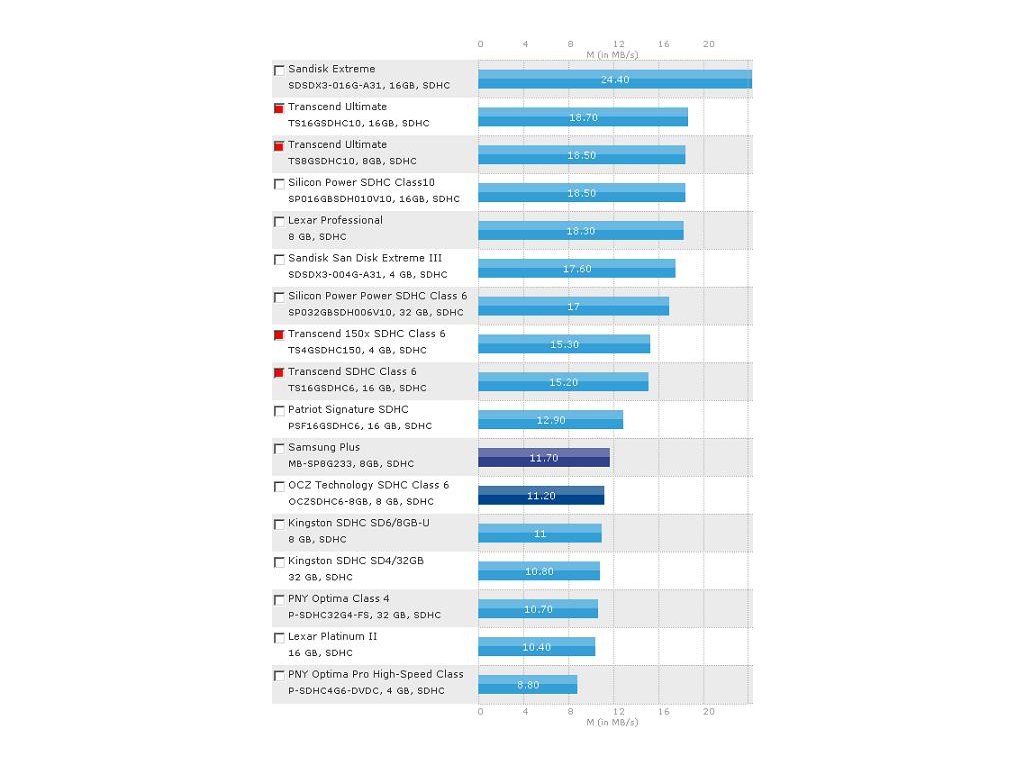 http://www.tomshardware.com/charts/sdhc-memory-card-charts/benchmarks,40.html