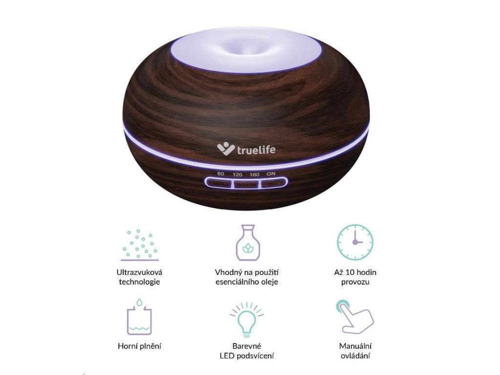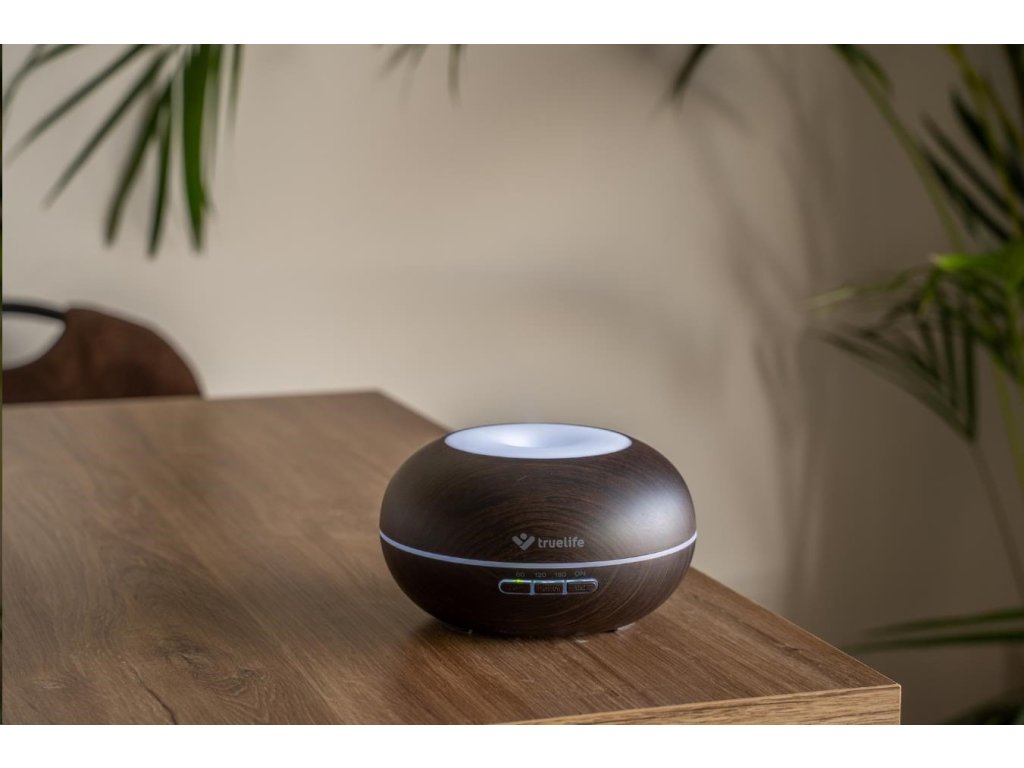 Aróma difuzér a zvlhčovač vzduchu Aróma difuzér Truelife jedným stlačením tlačidla prevonia vzduch v miestnosti vašej obľúbenou vôňou. Vytvorí príjemnú atmosféru na relaxáciu, jógu alebo meditáciu. Stačí pridat niekoľko kvapiek obľúbeného esenciálneho oleja do nádržky na vodu a technológia OilFlow® sa postará o zvyšok. Difúzer eliminuje okolité pachy a prevonia miestnosť vašou obľúbenou vôňou. Môžete ho používať aj ako zvlhčovač vzduchu. Funguje na principe ultrazvuku, ktorý mení vodu v nádržke na jemnú paru, ktorá sa mieša so vzduchom v miestnosti a takmer okamžite ho zvlhčuje na optimálnu úroveň. Atmosféra, ktorú chcete Difúzer Truelife prevonia vzduch v miestnosti v okamihu, stačí pridať do nádržky niekoľko kvapiek esenciálneho oleja. Či už ste milovníkom aromaterapie, chcete si vytvoriť príjemnú relaxačnú atmosféru alebo vás trápia nepríjemné pachy z okolia, difuzér je pre vás ideálnym nástrojom. Funguje na principe ultrazvuku, ktorý mení vodu v nádržke na jemnú paru. Môžete si vybrať zo 14 rôznych farieb LED podsvietenia. Poteší vás aj svojim originálnym a zároveň nadčasovým dizajnom. 2v1 Difúzer funguje aj ako zvlhčovač vzduchu, takže ak nemáte náladu na aromaterapiu, stačí naplniť nádržku vodou. Stlačením tlačidla na spustenie procesu zvlhčovania začne difuzér vypúšťať do vzduchu v miestnosti jemnú paru, ktorá ho okamžite začne zvlhčovať na optimálnu úroveň. Správna vlhkosť vzduchu prospieva dýchacím cestám a môže pomôcť pri problémoch so suchou pokožkou, ekzémoch alebo astme. Jednoducho nastavte požadované množstvo pary pomocou príslušného tlačidla. Dlhá životnosť, nízka hlučnosť, jednoduché používanie Nádržka na vodu difuzéra má kapacitu 300 ml a vydrží 10 hodín nepretržitého prevádzky. Difúzer môžete nechať zapnutý aj cez noc, vďaka nízkej hlučnosti nebude rušiť váš spánok. Vďaka automatickému indikátoru nedostatku vody sa difuzér sám vypne, keď je hladina vody nízka. Nehrozí tak riziko skratu ani prehriatia. Obsluha je veľmi jednoduchá a zvládne ju každý. Na ovládanie difuzéra slúžia tri tlačidlá, pomocou ktorých ho môžete zapnúť a vypnúť, nastaviť časovač alebo nastaviť požadovanú intenzitu pary či farbu LED podsvietenia. Ultrazvuková technológia Difúzer funguje na principe ultrazvukovej technológie, ktorá premieňa vodu v nádržke na jemnú paru, ktorá sa mísi so vzduchom v miestnosti. Vrchné plnenie Difúzer sa veľmi ľahko plní vodou, stačí odstrániť kryt v hornej časti zariadenia a naliať vodu do nádržky. Vhodný na používanie esenciálnych olejov Do zásobníka na vodu môžete pridať esenciálny olej alebo vôňu podľa vlastného výberu a vytvoriť príjemnú atmosféru. Technológia OilFlow® Vďaka jedinečnej technológii OilFlow® stačia na celú nádržku dve až tri kvapky esenciálneho oleja. Môžete si tak v izbe vychutnávať aromaterapiu bez toho, aby ste museli neustále pridávať olej ako pri iných difuzéroch. Manuálne ovládanie Tri tlačidlá slúžia na zapnutie a vypnutie difuzéra, výber farby podsvietenia, nastavenie intenzity pary a časovača. 3 režimy pary Môžete si vybrať z troch režimov intenzity pary - vysoký výkon, nízky výkon a prerušovaný režim. S režimom vysokého výkonu máte dostatok pary na rýchle prevoňanie miestnosti. Na druhej strane, nízky výkon a prerušovaný režim vám poskytnú dlhotrvajúcu paru. 14 farieb LED podsvietenia Difúzer umožňuje 14 možností farebného podsvietenia a rôznych režimov. Až 10 hodín prevádzky Kapacita nádržky postačuje až na 10 hodín nepretržitého prevádzky difúzora. Časovač Vďaka možnosti nastavenia času prevádzky sa nemusíte obávať vypnutia a môžete ísť pokojne aj spát. Žiadne toxické látky Difúzer je úplne bez toxických látok BPA. Je preto úplne bezpečný pre celú rodinu, dokonca aj pre malé deti. Nemusíte sa teda ničoho obávať a difuzér môžete používať každý deň aj noc. Automatické vypnutie v prípade nedostatku vody Difúzer monitoruje hladinu vody v nádržke a upozorní vás na nedostatok vody, potom sa automaticky vypne. Program AIR Zabezpečte kvalitný vzduch pre vás a vašu rodinu pomocou nášho programu TrueLife AIR. Viac informácií nájdete na truelife.eu/air. Parametre TrueLife AIR Difuzér D5 Dark Doporučená plocha miestnosti 30 m2 Prevádzkový čas Až 10 hodín Spotreba energie 7 W Ultrazvukový systém ANO Počet úrovní výkonu 3 - vysoký výkon, nízky výkon, prerušovaný režim Kapacita nádržky na vodu 300 ml Aromaterapia ANO Časovač áno - 60 minút/1 Funkcia osvetlenia Striedanie farieb, jedna farba Obsah balenia 1× TrueLife AIR difúzor D5 Dark 1× adaptér 1× manuál 1× bezpečnostné pokynyDodatočné parametre