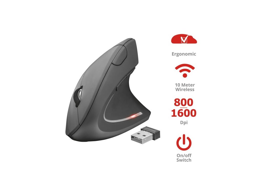 Bezdrôtová optická myš s ergonomickým vertikálnym dizajnom Ergonomický vertikálny dizajn znižuje záťaž ruky a zápästia Pohodlná opierka na palec s gumovým povrchom pre dokonalé uchopenie Tlačidlo volby rýchlosti (800/1200/1600 DPI) 2 tlačidlá pre palec - späť OS, Chrome OS Port USBDodatočné parametre