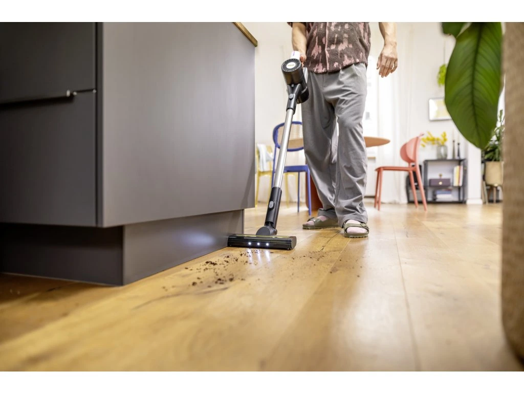 Senzor prachu a Clean Control: inteligentná detekcia nečistôt automaticky upravuje sací výkon v 3 stupňoch. Farebný kód na displeji (tyrkysová až fialová) vás okamžite informuje o úrovni znečistenia podlahy.Viacúrovňový filtračný systém HEPA zachytí 99,9 % častíc, takže je ideálnou voľbou pre alergikov a majiteľov domácich zvierat.