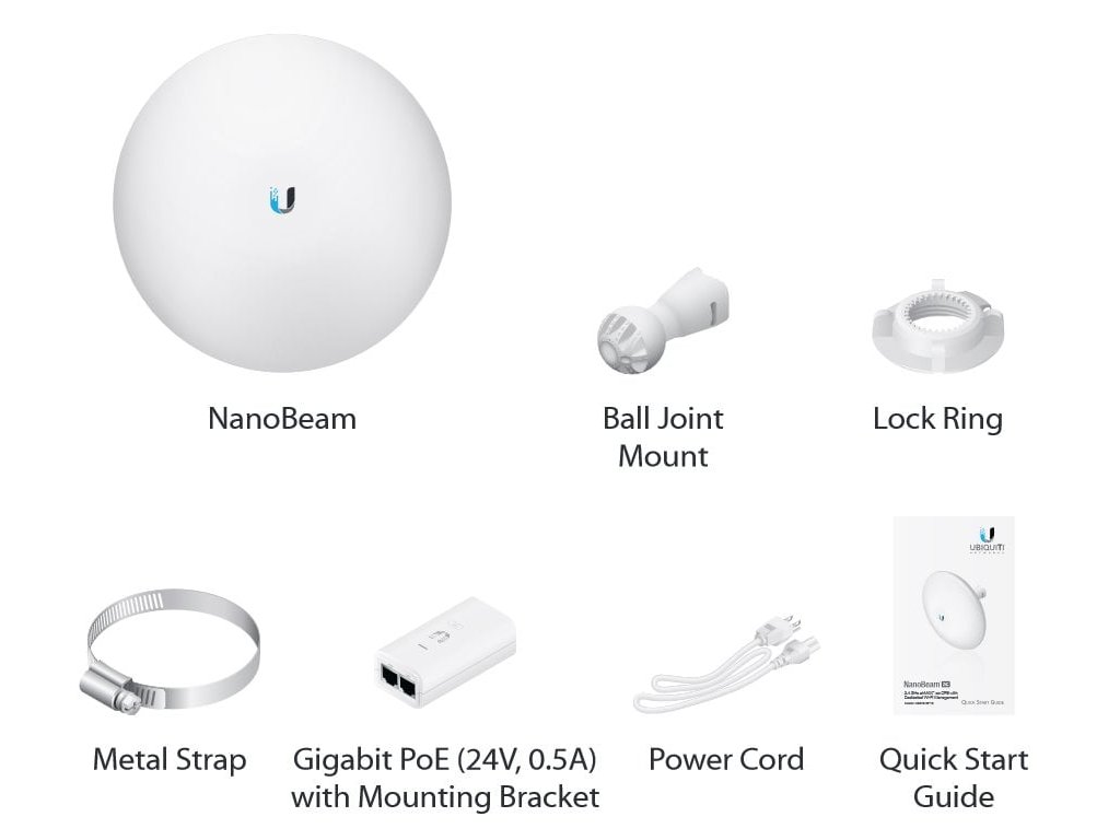Vo vnútri zariadenia NanoBeam sa nachádza výkonný procesor MIPS Atheros 74KC s frekvenciou 533 MHz, na ktorý nadväzuje 64 MB operačnej pamäte DDR2. Sieťový port podporuje 10/100/1000 Ethernet a možno ho použiť na napájanie zariadenia pomocou pasívneho adaptéra Gigabit PoE 24V/0,5A, ktorý je súčasťou balenia (aktívne PoE podľa 802.3af nie je podporované).