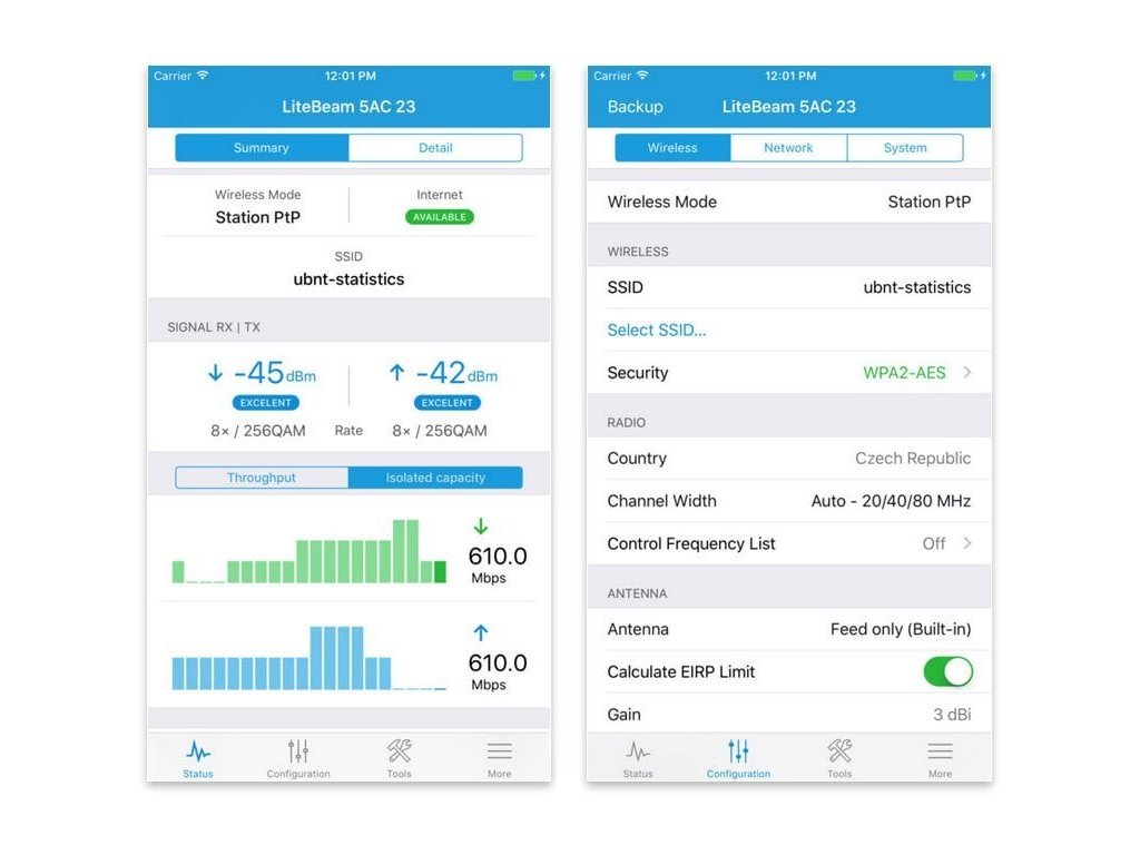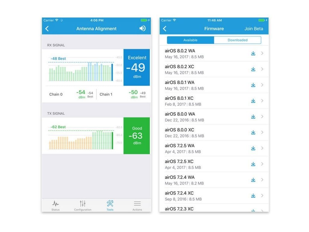 Novinkou všetkých produktov Gen2 s protokolom airMAX ac je nový operačný systém airOS 8. Tento systém napríklad vykresľuje konšteláciu diagramu a hodnotu SNR v reálnom čase.