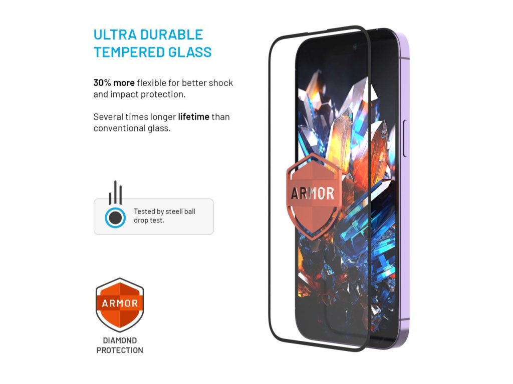 Mimoriadne odolné tvrzené sklo Armor je dokonalá neviditeľná ochrana obrazovky, ktorá poskytuje mnohonásobne dlhšiu životnosť a odolnosť voči nárazom. Sklo je vyrobené z vysokokvalitných materiálov, vďaka čomu má vyššiu tvrdosť v porovnaní s bežnými ochrannými sklami. Vďaka svojej zvýšenej pružnosti účinne absorbuje nárazy a odolá takmer každému pádu, poškriabaniu a minimalizuje riziko rozbitia. Špeciálna úprava proti odleskom zlepšuje čitateľnosť displeja, eliminuje odlesky slnečného a umelého svetla, zatiaľ čo vylepšená oleofóbna vrstva zabezpečuje plynulý pohyb prstov po displeji bez zanechávania odtlačkov prstov. Jeho presnú aplikáciu zvládne každý vďaka aplikátoru s jedinečnou protiprachovou vrstvou, ktorá odstraňuje prach alebo iné nečistoty a zabraňuje vzniku vzduchových bublin. Extrémna odolnosť a ďalšie vlastnosti skla Armor sú dôsledne testované spoločnosťou FIXED. Vlastnosti: - Mimoriadne odolné ochranné sklo - Vyrobené z najkvalitnejších materiálov s vysokou odolnosťou - Mimoriadna odolnosť voči prasklinám - o 30% vyššia odolnosť v porovnaní s bežnými sklami - Antireflexná úprava pre jasný a čitateľný displej na slnečnom svetle alebo pri umelom osvetlení prstom - Niekoľkonásobne dlhšia životnosť skla - Špeciálny aplikátor proti prachu na presné priľnutie skla bez nečistot a vzduchových bublin - vyrobené presne na mieru telefónu - 2,5D dizajn s jemne zaoblenými hranami - Kompatibilný s krytmi a puzdrami na telefón - lepenie po celej ploche skla - Parametre sklaDodatočné parametre