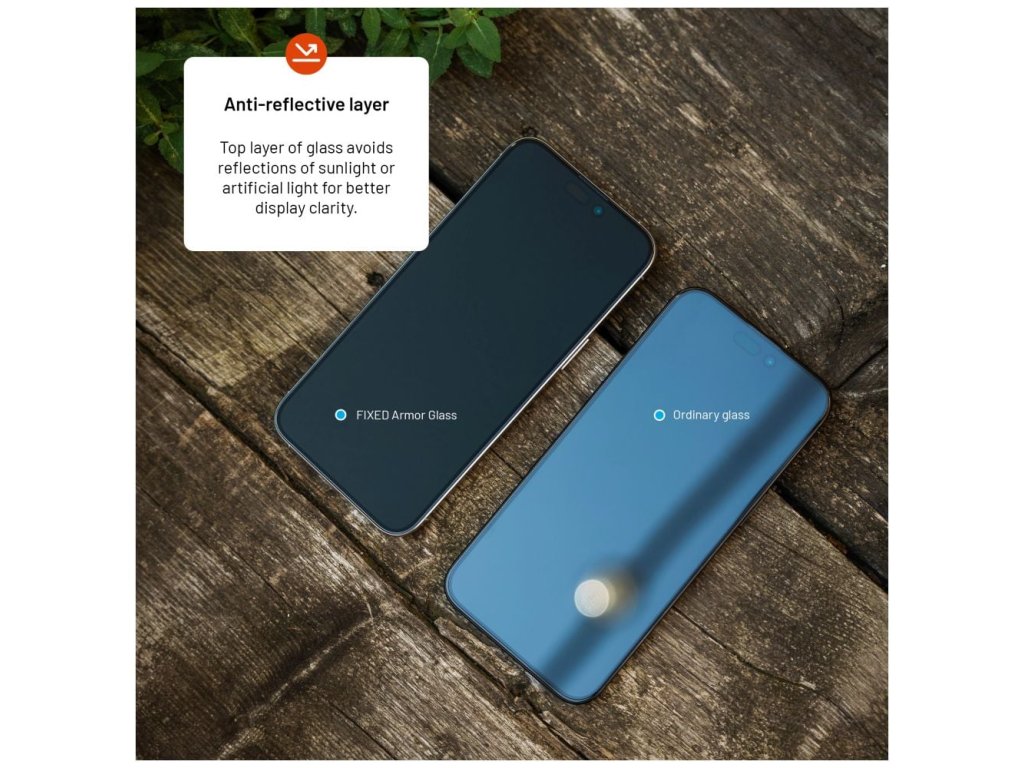Mimoriadne odolné tvrzené sklo Armor je dokonalá neviditeľná ochrana obrazovky, ktorá poskytuje mnohonásobne dlhšiu životnosť a odolnosť voči nárazom. Sklo je vyrobené z vysokokvalitných materiálov, vďaka čomu má vyššiu tvrdosť v porovnaní s bežnými ochrannými sklami. Vďaka svojej zvýšenej pružnosti účinne absorbuje nárazy a odolá takmer každému pádu, poškriabaniu a minimalizuje riziko rozbitia. Špeciálna úprava proti odleskom zlepšuje čitateľnosť displeja, eliminuje odlesky slnečného a umelého svetla, zatiaľ čo vylepšená oleofóbna vrstva zabezpečuje plynulý pohyb prstov po displeji bez zanechávania odtlačkov prstov. Jeho presnú aplikáciu zvládne každý vďaka aplikátoru s jedinečnou protiprachovou vrstvou, ktorá odstraňuje prach alebo iné nečistoty a zabraňuje vzniku vzduchových bublin. Extrémna odolnosť a ďalšie vlastnosti skla Armor sú dôsledne testované spoločnosťou FIXED. Vlastnosti: - Mimoriadne odolné ochranné sklo - Vyrobené z najkvalitnejších materiálov s vysokou odolnosťou - Mimoriadna odolnosť proti prasklinám - o 30% vyššia odolnosť v porovnaní s bežným sklom - Antireflexná úprava pre jasný a čitateľný displej na slnečnom svetle alebo pri umelom osvetlení - Oleofóbna vrstva Niekoľkonásobne dlhšia životnosť skla - Špeciálny aplikátor proti prachu na presné priľnutie skla bez nečistot a vzduchových bublin - vyrobené presne na mieru telefónu - 2,5D dizajn s jemne zaoblenými hranami - Kompatibilný s krytmi a puzdrami na telefón - lepenie po celej ploche skla - Parametre sklaDodatočné parametre